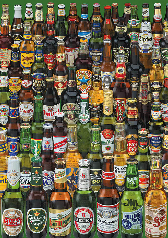 Casse-tête de 1000 pièces représentant une sélection de bières internationales.