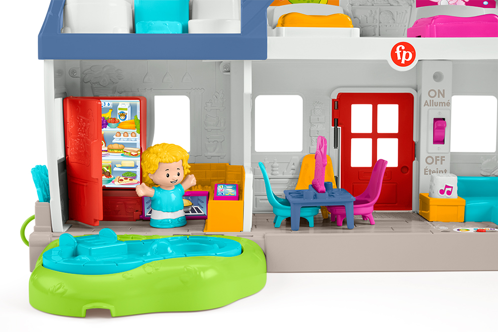 Kids can act out their own fun play dates and sleepovers with the Little People Friends Together Play House from Fisher-Price. This interactive playset is loaded with engaging play as kids move the 3 best friend figures through the rooms of the home, as well as the outdoor patio with swimming pool and the tree swing. As toddlers play, the Smart Stages learning content teaches the alphabet, counting, opposites and more while encouraging kids to play out their own imaginative stories.