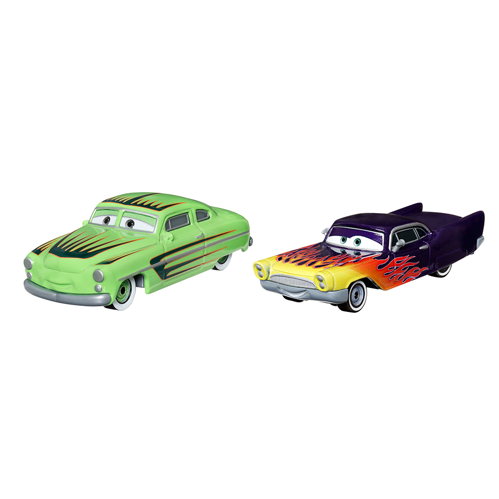 These exciting 2-packs bring favorite scenes from Disney and Pixar Cars movies and the Disney+ Cars On The Road series to life with two cars paired together in one set. Each highly detailed, 1:55 scale die-cast vehicle features iconic colors, signature logos, rolling wheels and unique personality accents. Fans will love the range of dynamic characters coupled for creative storytelling fun! Recreate their onscreen action, adventures and laughs, right out of the pack. Each 2-pack sold separately, subject to availability. Colors and decorations may vary.