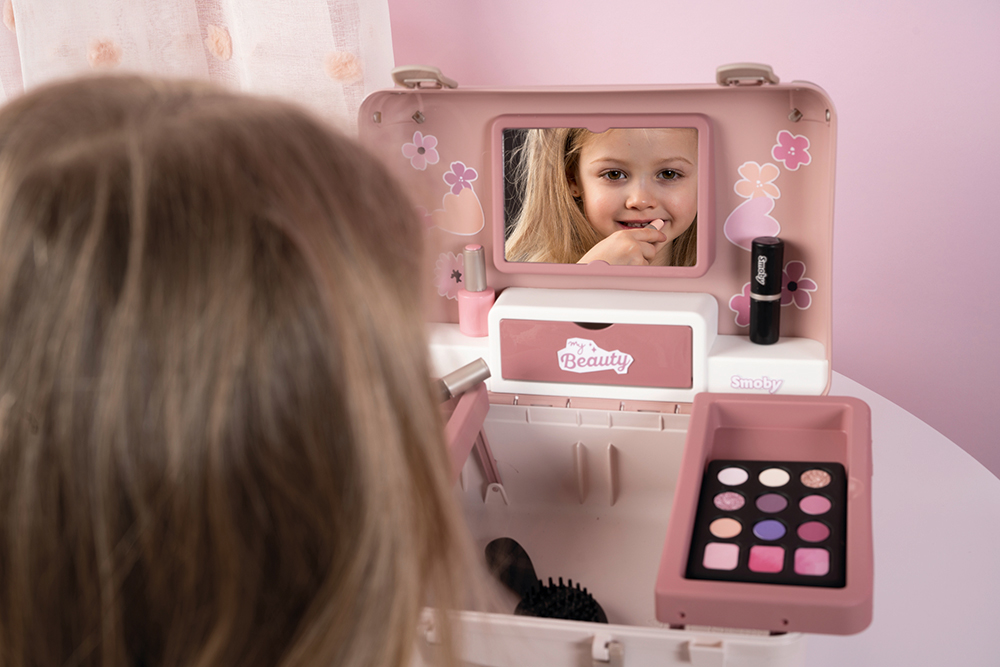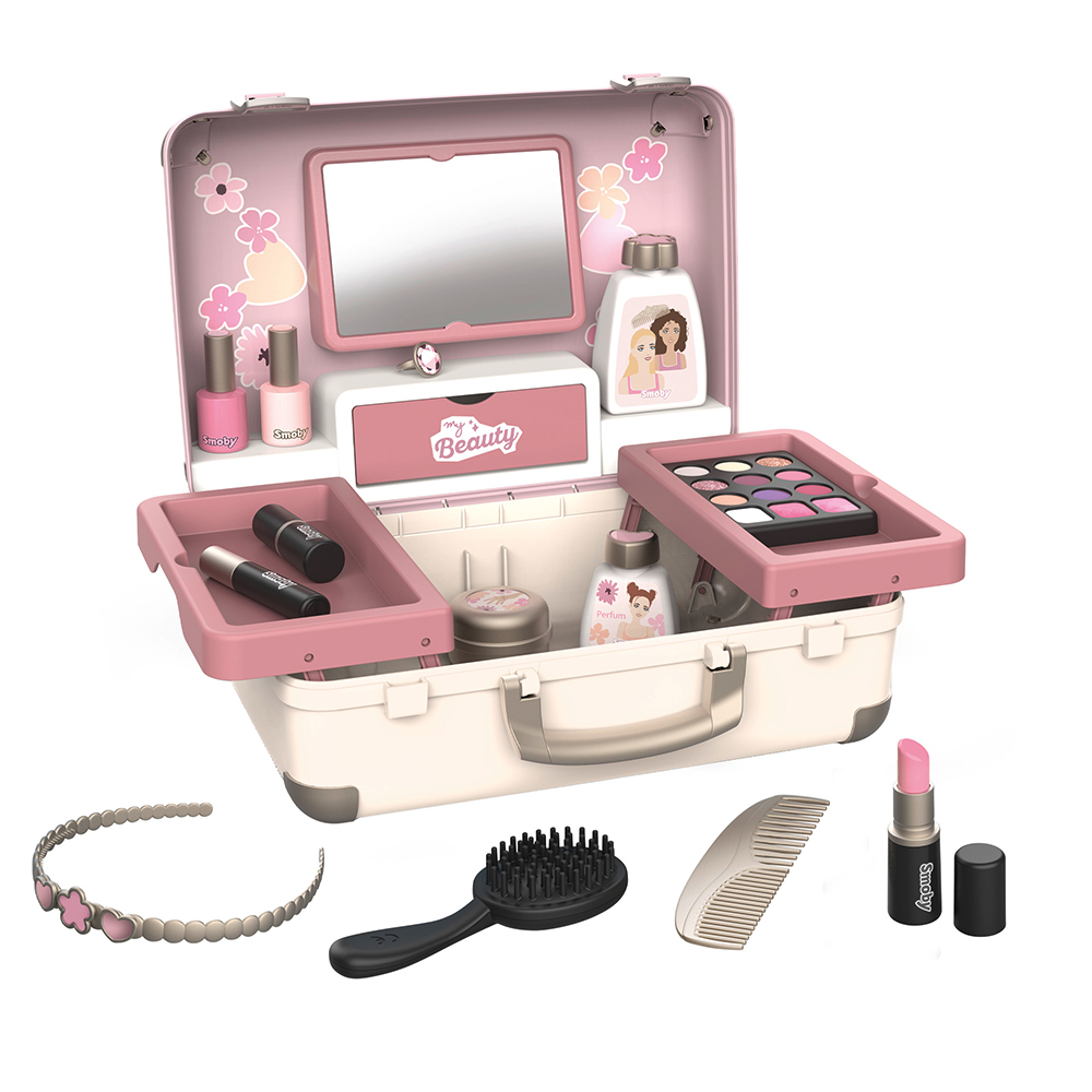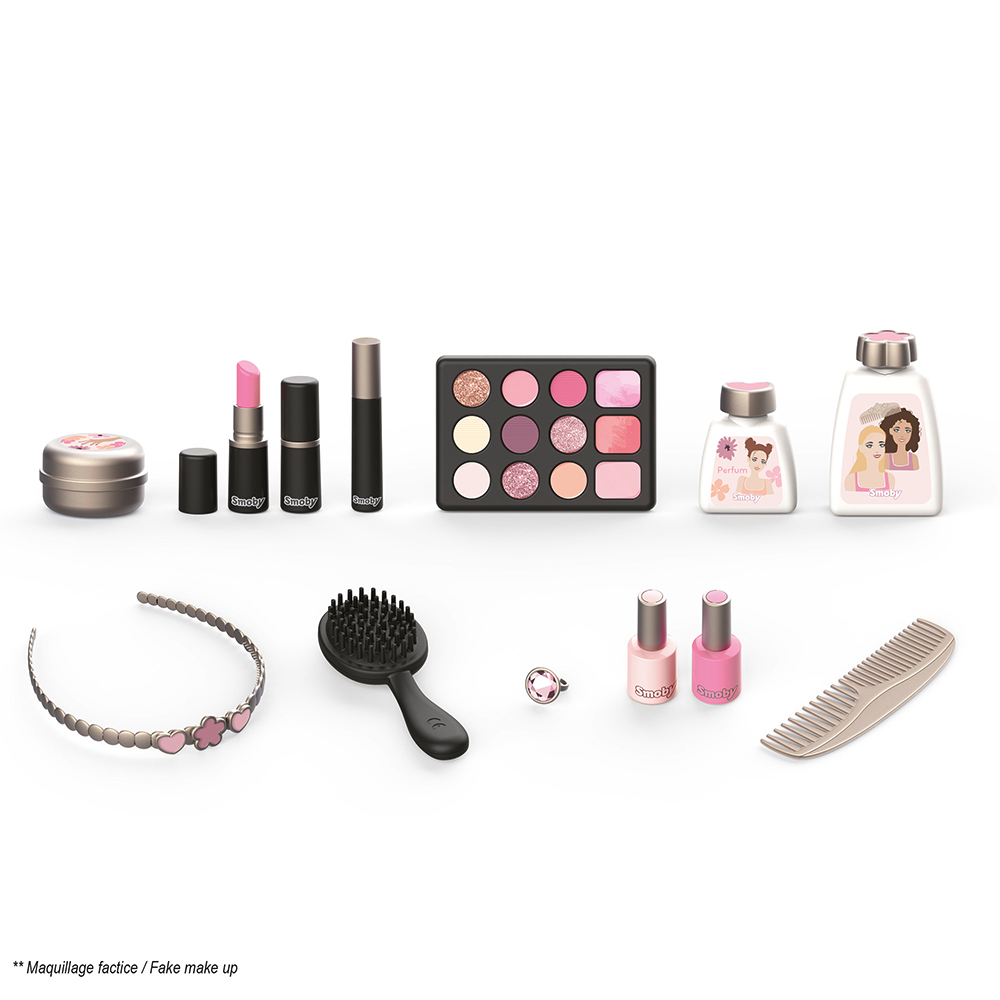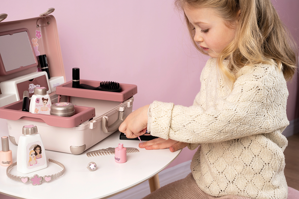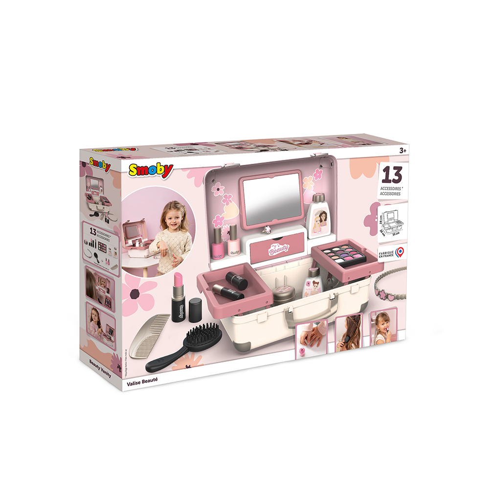 Beauty vanity easy to transport, gathering 3 universes: hairdressing, nail salon, make-up.