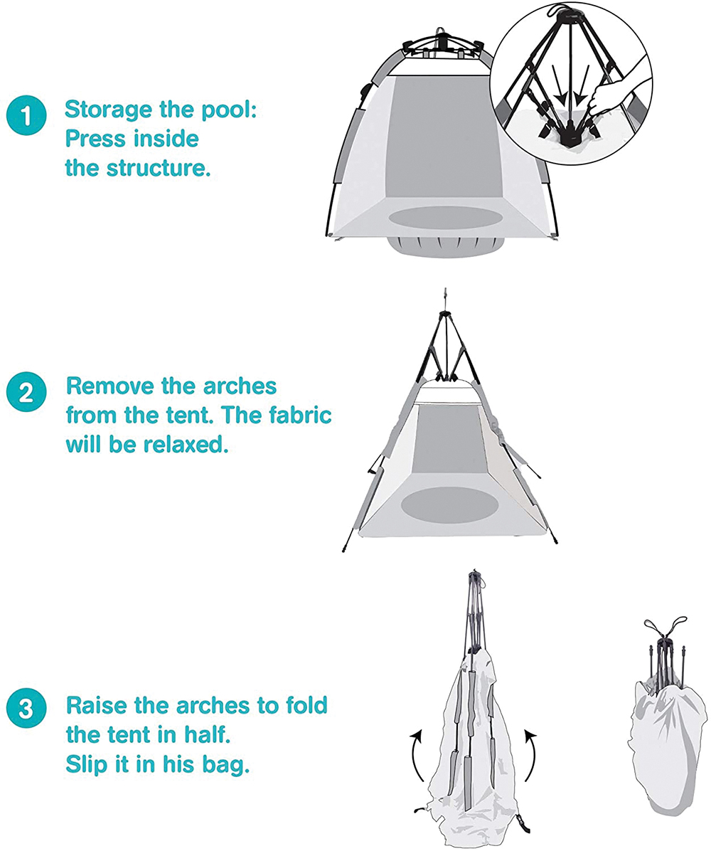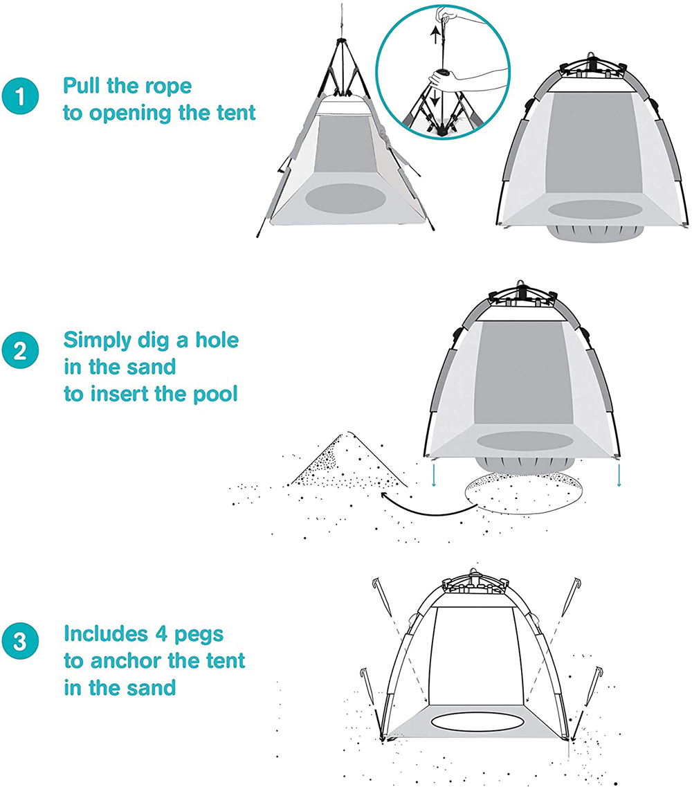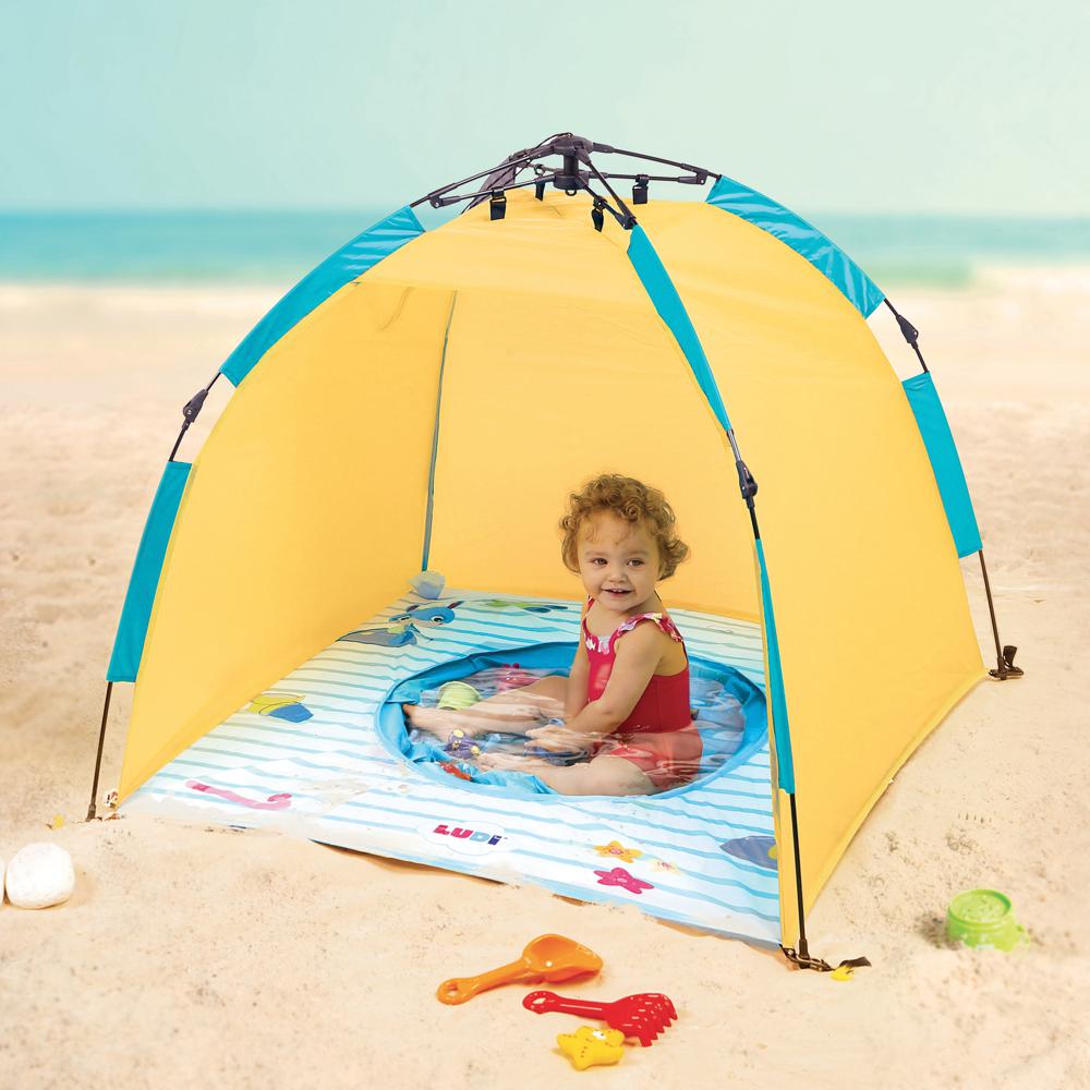 Both a tent and a baby-sized waterhole, children can enjoy seawater right in front of their parents as they lie on their towel. Dig a hole, put the pool in, and voilà!
