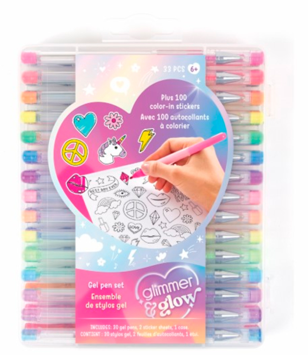 Ajoutez de l'éclat à chaque création avec l'ensemble de 30 stylos gel Glimmer & Glow! Couleurs vives à encre fluide, avec une feuille d'autocollants amusants-idéals pour le journaling, les loisirs créatifs et l'école.