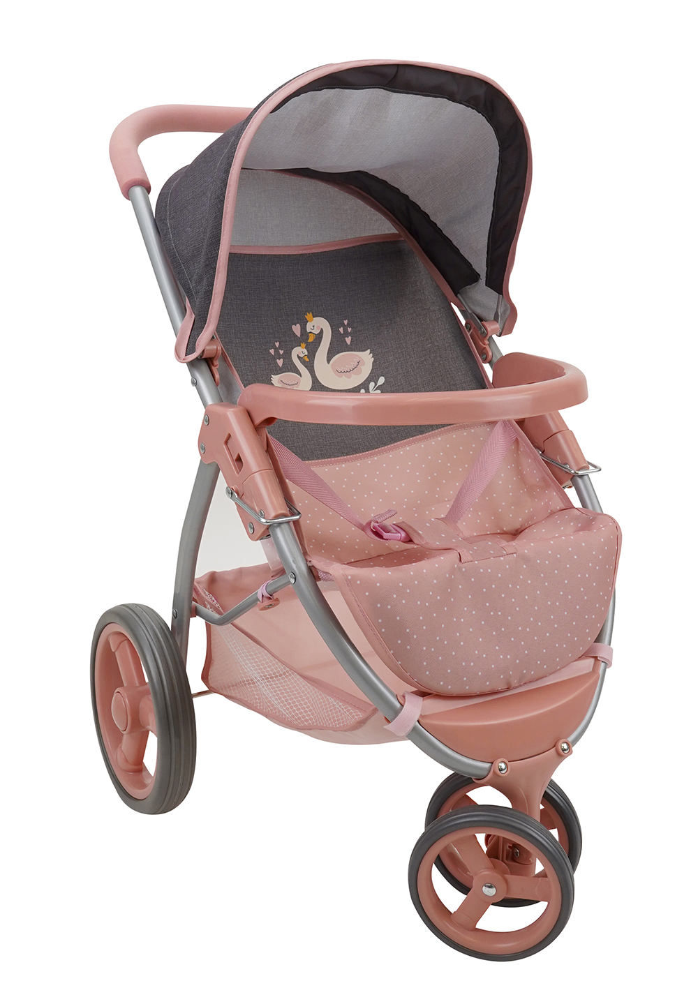 La poussette jogger pour poupée Little Swan allie parfaitement style et fonctionnalité, idéale pour le jogging, la marche ou la promenade avec votre poupée ou animal en peluche préféré. Elle est équipée d'un panier spacieux, d'un auvent rétractable, d'une barre de pare-chocs à l'avant, d'une roue avant pivotante bicolore et de grandes roues arrière. Le siège dispose d'un harnais de sécurité ajustable pour la sécurité de votre jouet favori. Fabriquée en polyester durable facile à laver à la main, cette poussette présente une construction robuste en tube d'acier. Pour plus de commodité, elle se plie facilement pour le rangement ou le voyage, et un système de verrouillage de sécurité supplémentaire garantit sa stabilité.