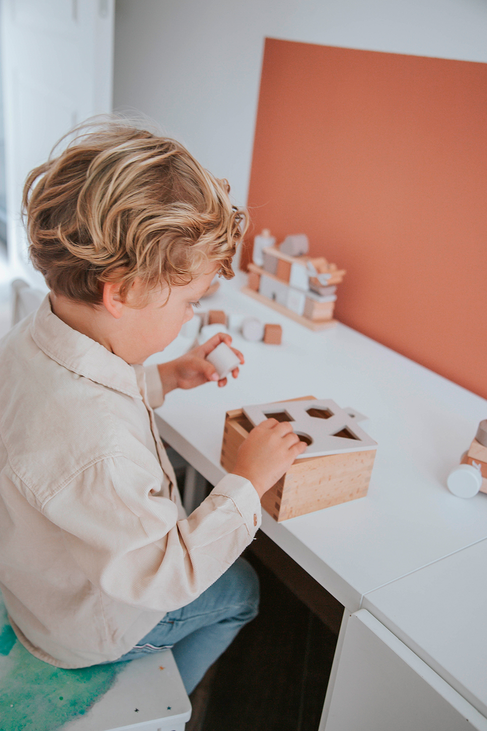 Recognizing shapes and surfaces in a playful way is much more fun thanks to this shape sorting box from Label Label.