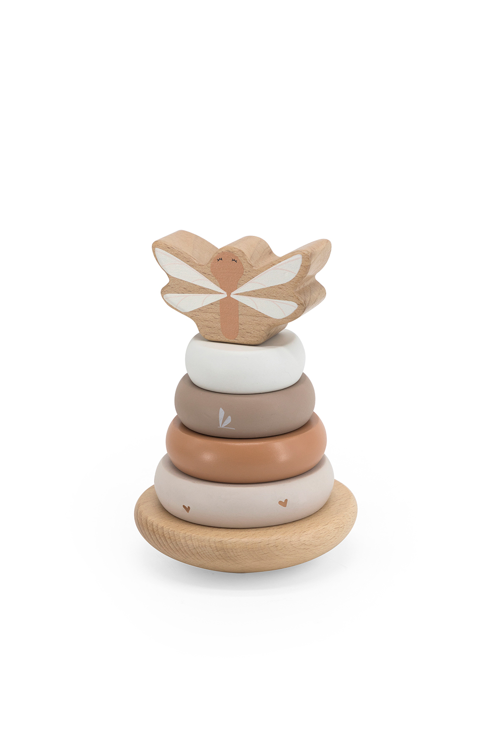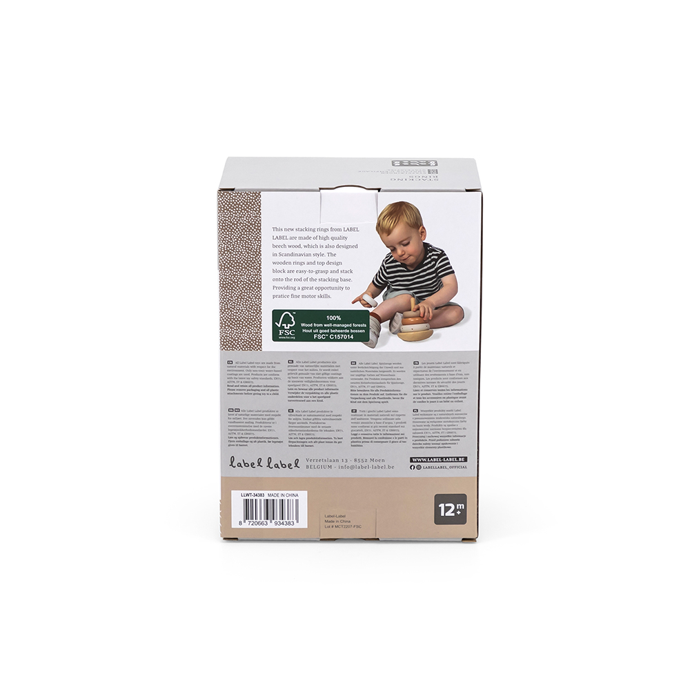 La pyramide à base balançante est faite de bois de hêtre certifié FSC de qualité et a été décorée avec de belles tonalités douces nougat en utilisant de la peinture à base d’eau non nocive pour enfants. Les anneaux d’empilage et le bloc supérieur sont décorés d'un joli symbole. Les anneaux et le bloc supérieur sont faciles à tenir pour les petites mains. Empilez de grand à petit ou de petit à grand ou triez les couleurs... votre enfant peut décider par lui-même ce qu’il aime et, en attendant, il exerce la coordination œil-main et le raisonnement. Le jeu terminé? Alors cette pyramide fera briller chaque pièce, une valeur décorative supplémentaire pour chaque pièce.