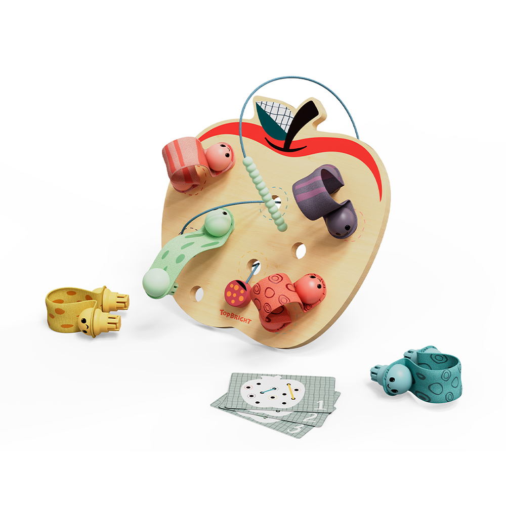 With the educational toy Apple Worms, toddlers from 18 months help the hungry worms to eat their way through the juicy apple. The children put the colourful worms through the holes according to the included playing cards. In the combination of a threading game and a peg game, children either thread a worm on a string through the holes in the apple or insert the colourful worms with the peg elements at both ends into the holes. Thanks to the connecting fabric element between the peg elements, the apple worms are easy to move.