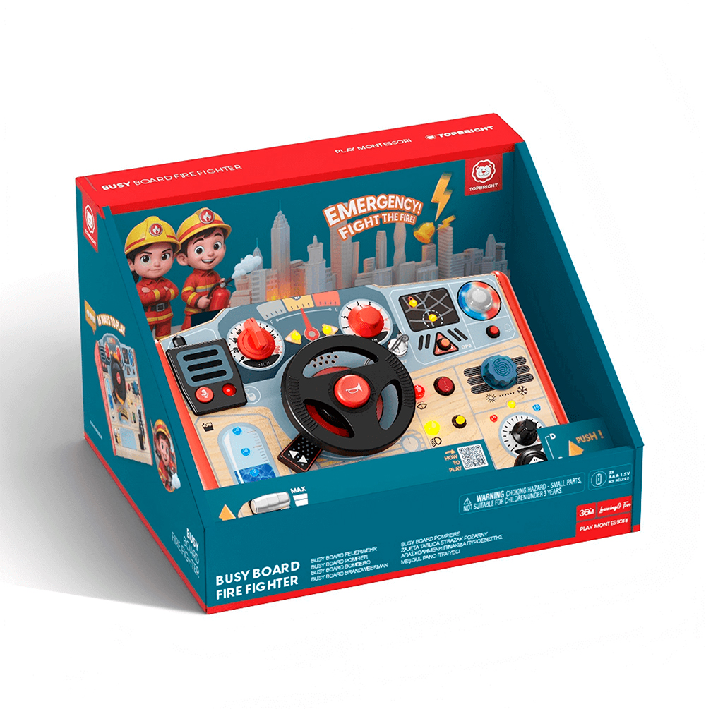 The Busy Board Fire Fighter turns playtime into an exciting driving adventure for aspiring little heroes.