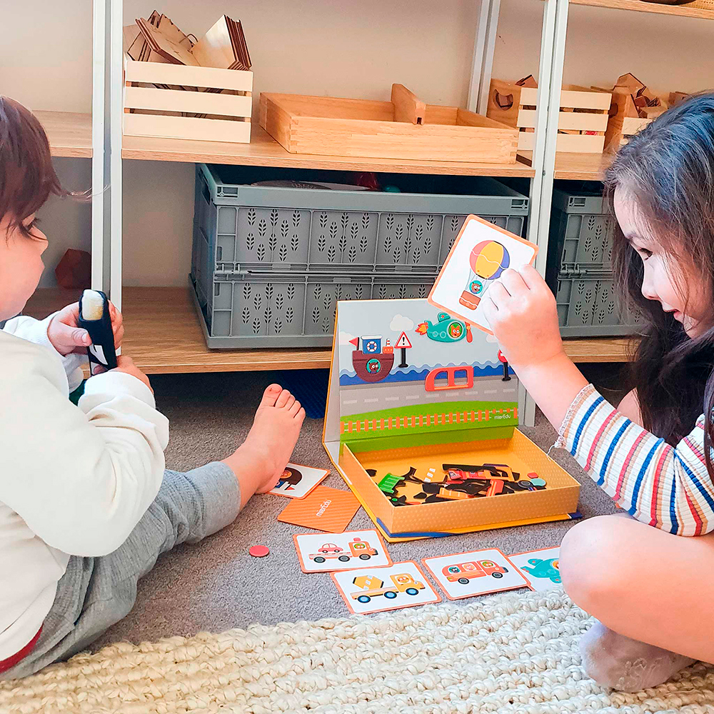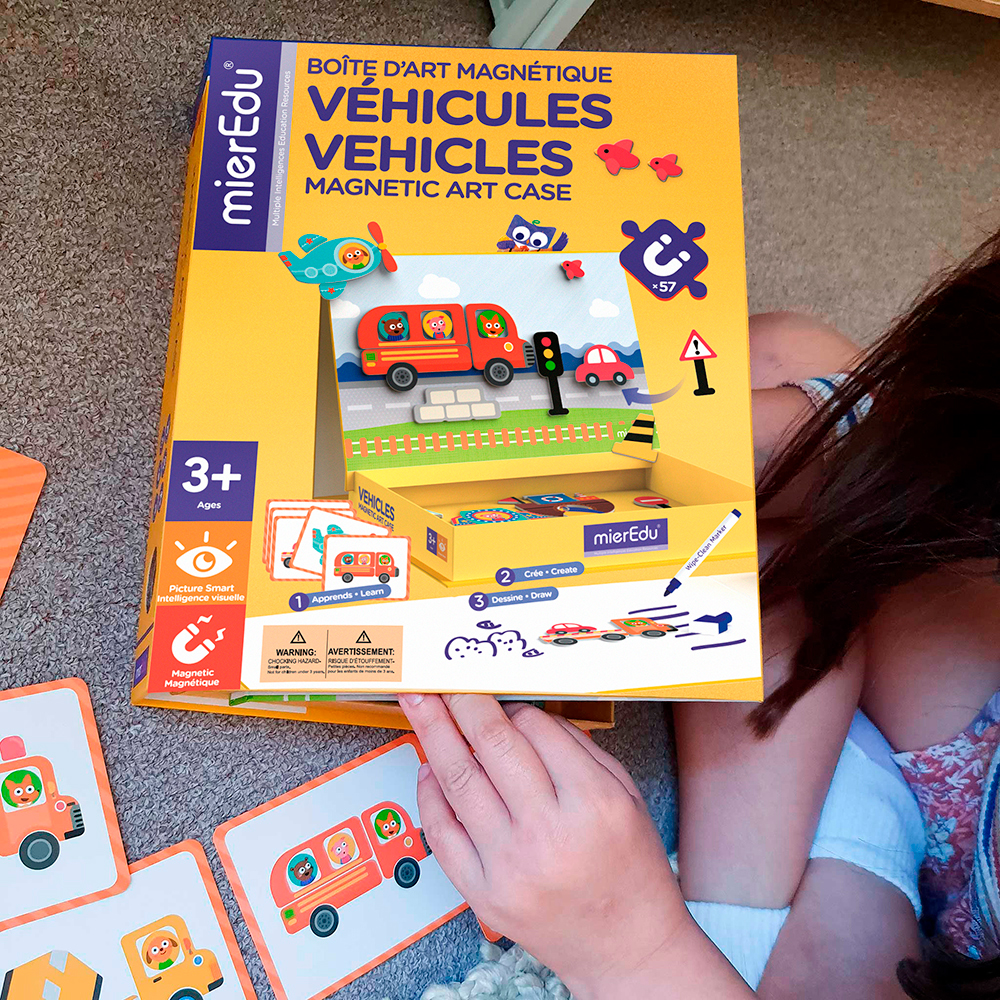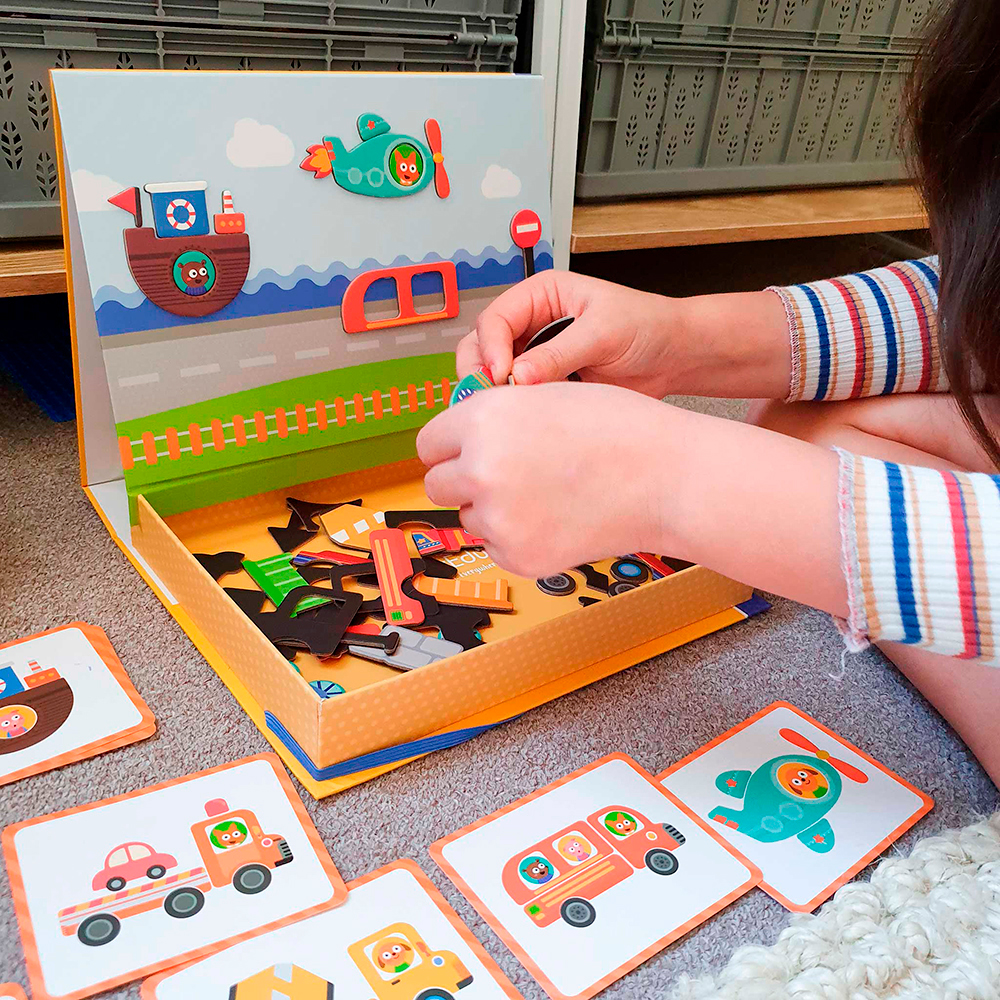 Ces jeux de puzzle magnétiques éducatifs sont faciles à transporter et amusants à jouer en déplacement. Grâce aux aimants, les enfants peuvent créer leurs propres histoires et images sur le tableau, donnant ainsi vie à leur imagination. Composée de 57 aimants, de 8 cartes et d'un marqueur effaçable, cette mallette est pratique et facile à transporter. Une fois la mallette ouverte, elle se transforme en une grande planche à dessin effaçable, permettant aux enfants de dessiner et de créer leurs propres histoires. Les jeux de la mallette magnétique sont parfaits pour développer la créativité, le dessin et la motricité fine.
