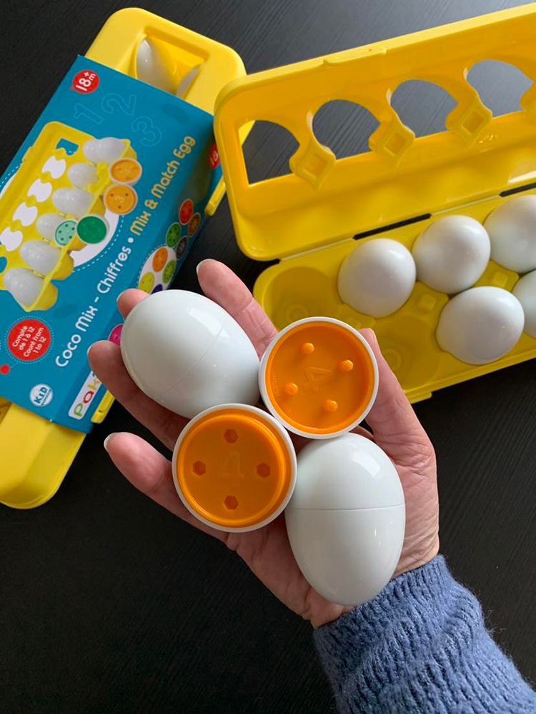 Leur taille identique aux vrais oeufs les rend parfaits pour les petites mains. Ils sont faciles à saisir et à manipuler. Les enfants vont adorer ''casser les œufs'' pour découvrir une combinaison unique de couleurs et de nombres pour ensuite les assembler à nouveau.