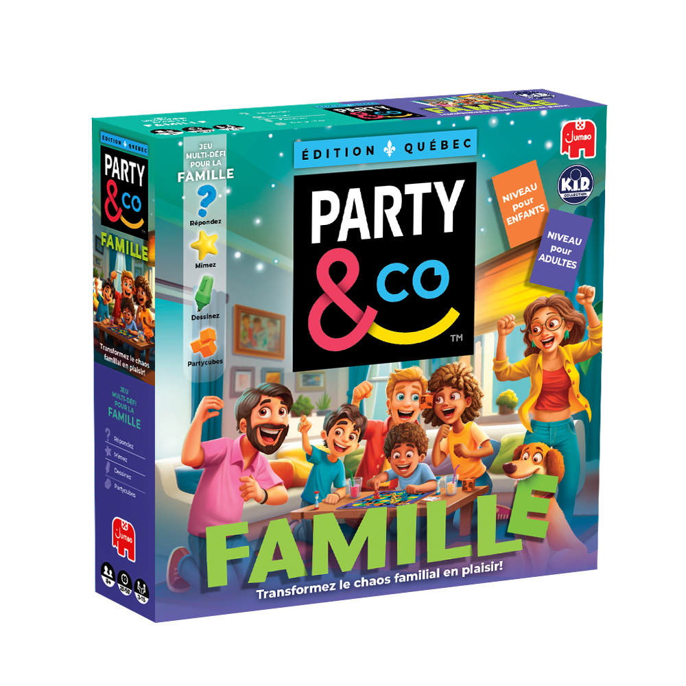 Rires garantis et défis en rafale! Party & Co Famille – Édition Québec transforme vos soirées en véritables moments de complicité intergénérationnelle. Mimez, dessinez, répondez à des questions originales et relevez des défis amusants dans une ambiance festive où petits et grands jouent ensemble.