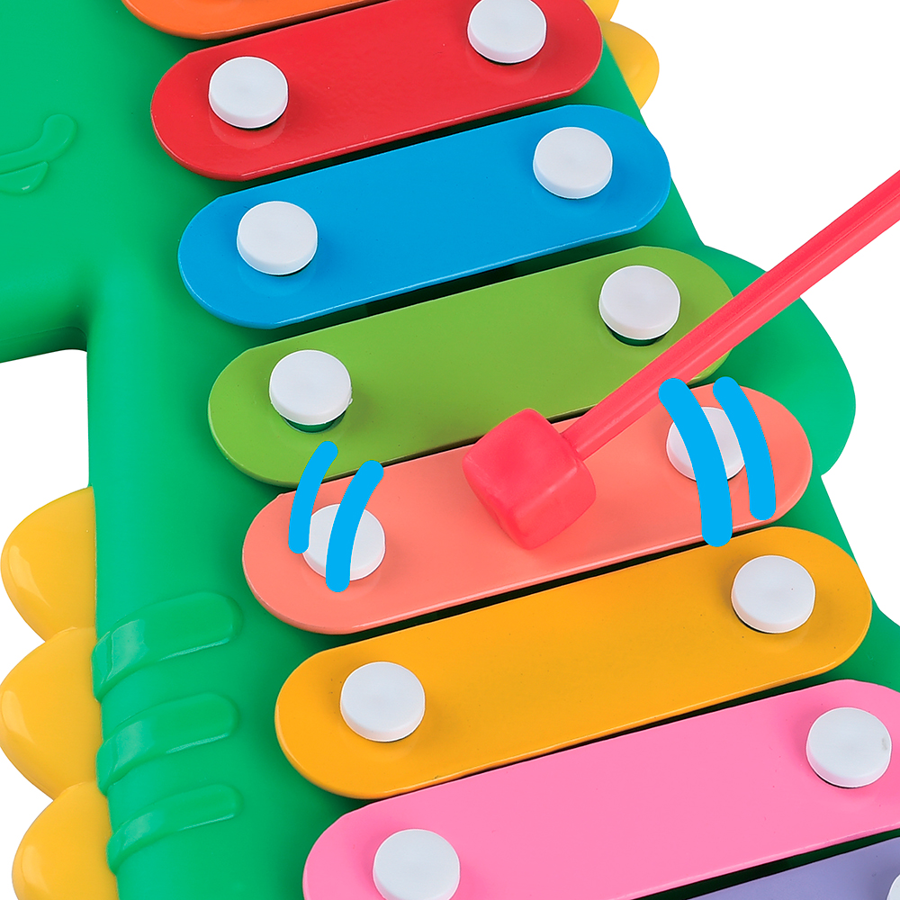 Its bright metal keys produce clear, pleasant tones, helping develop hand-eye coordination and musical creativity.