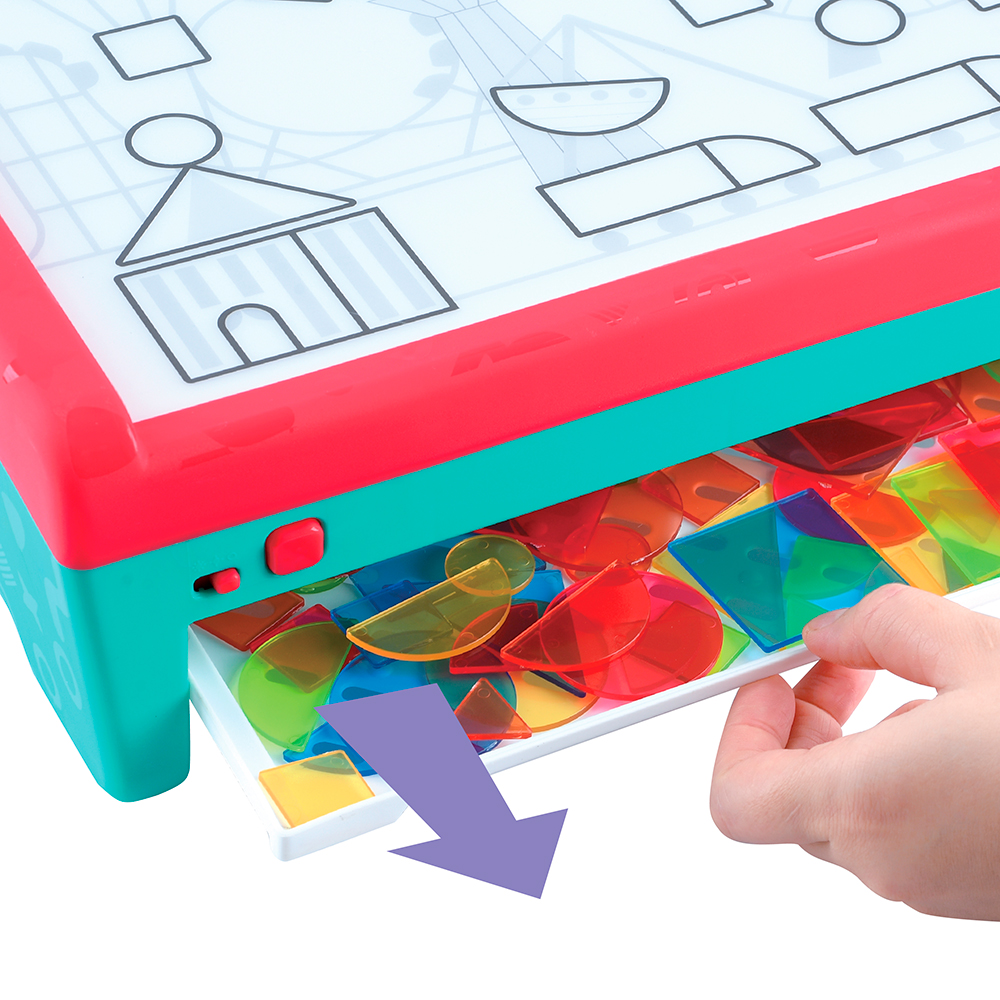 Les enfants placent les formes sur la surface éclairée pour découvrir les couleurs, les superpositions et les effets lumineux. Idéal pour stimuler la créativité, la reconnaissance des formes et l’apprentissage visuel.