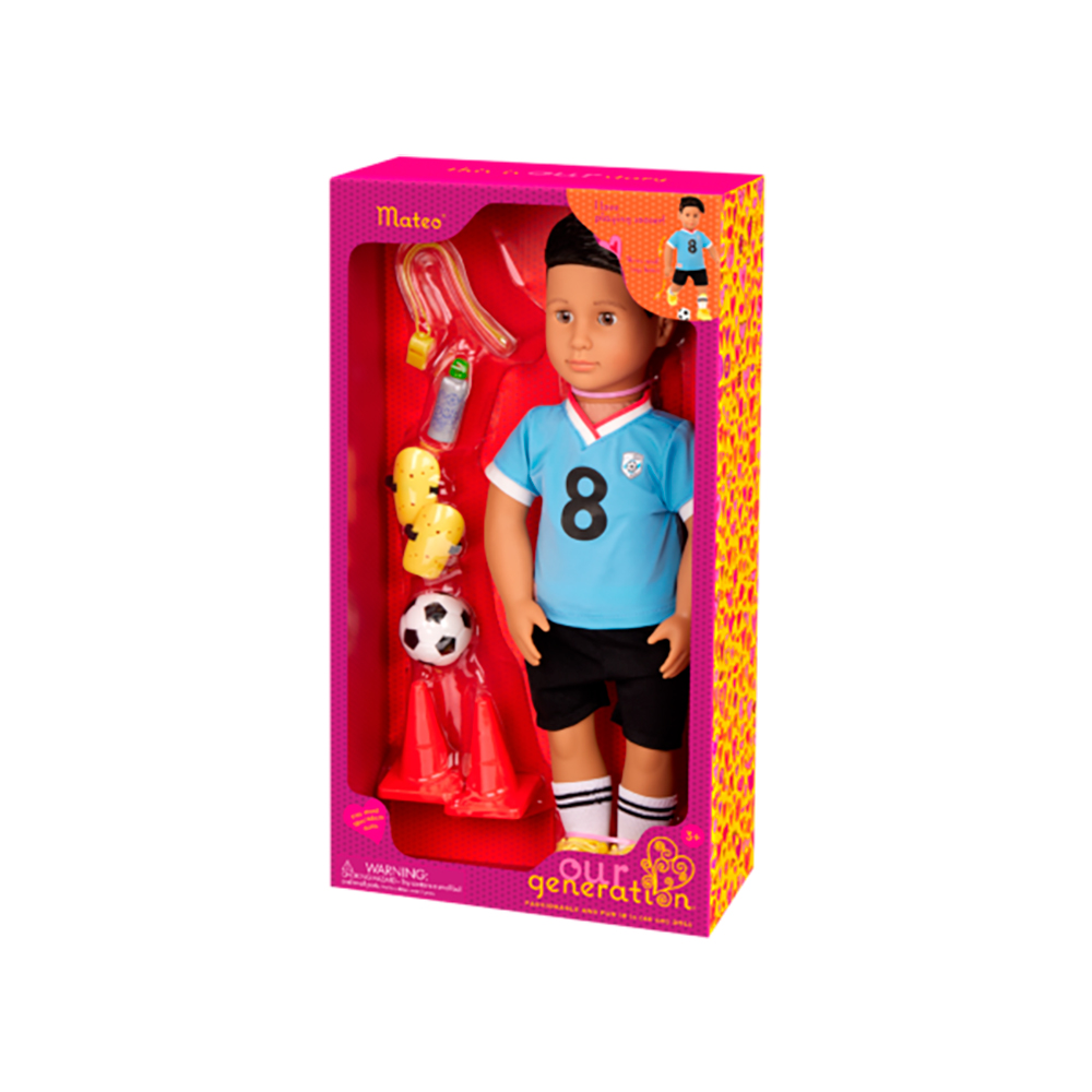 Célébrez le beau jeu du soccer et commencez à vous amuser avec Mateo, la poupée garçon de 18 pouces de Our Generation!