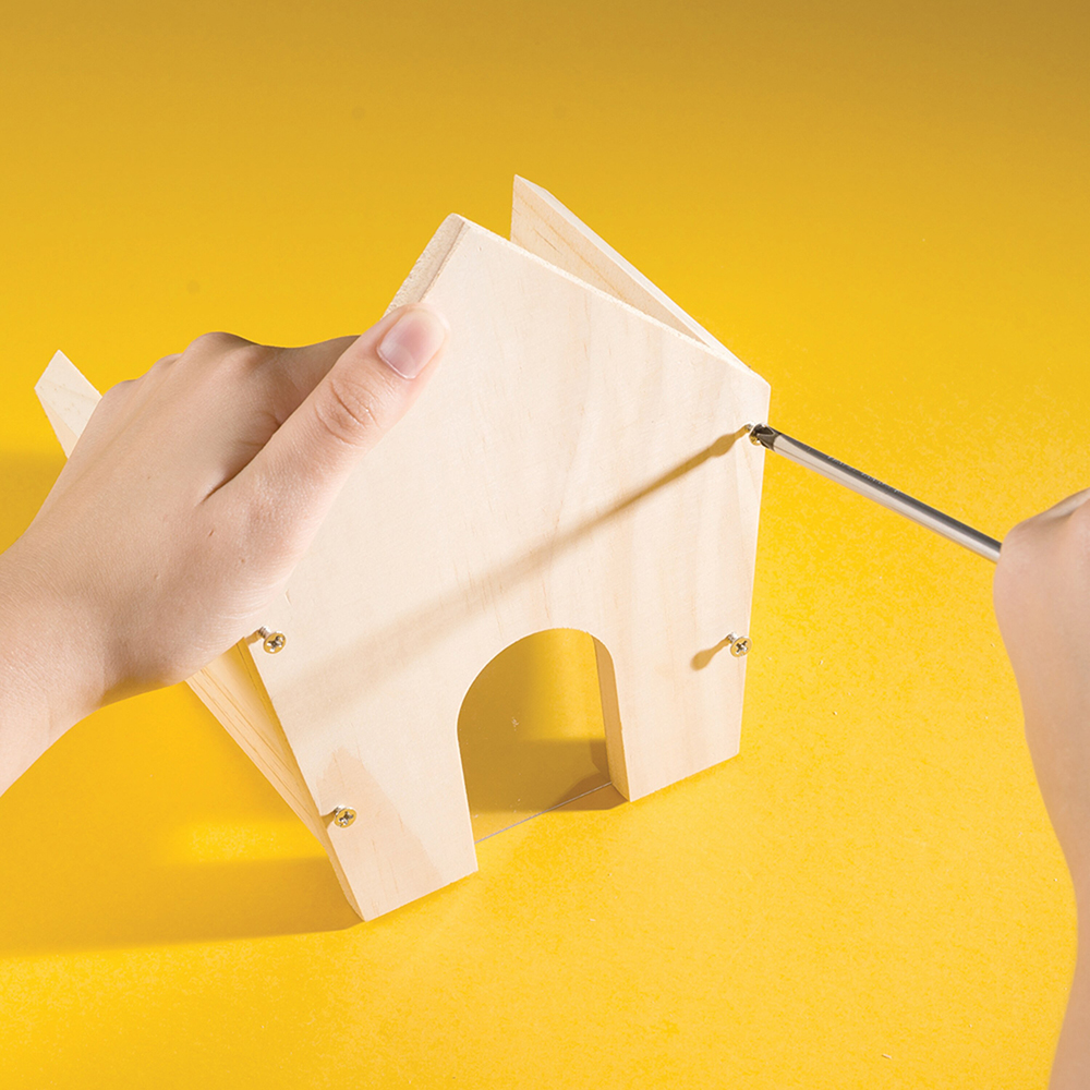 Construis et personnalise ta propre mangeoire à oiseaux à l’aide de la peinture et du pinceau fournis.