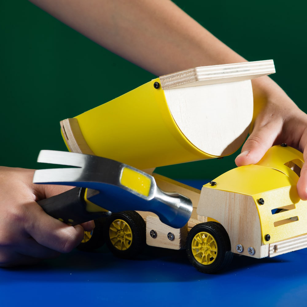Build and customize your own dump truck with the included paints and brush.