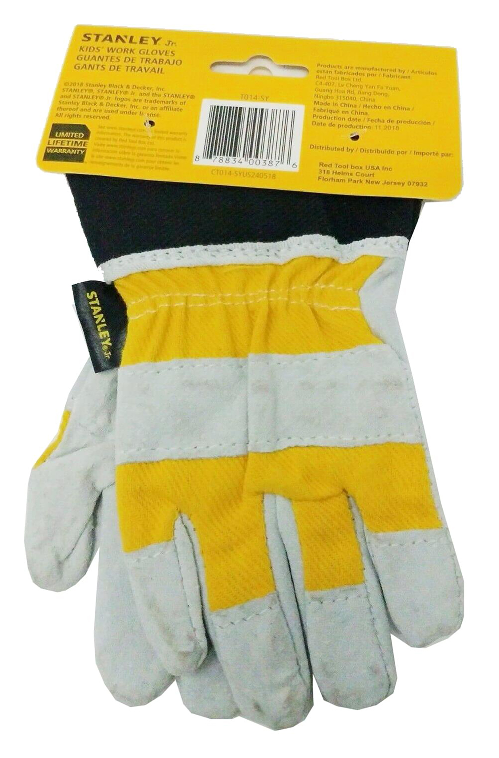 Kid sized fabric work gloves to keep their hands safe and comfortable.