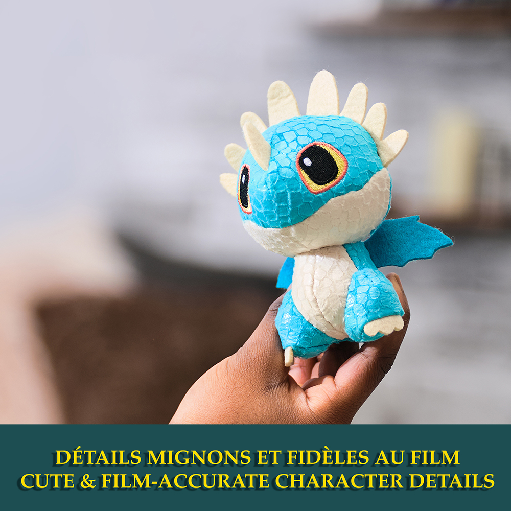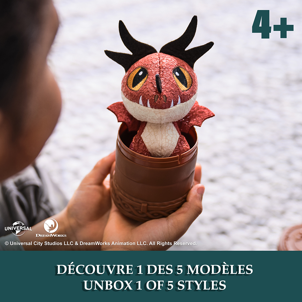 Déverrouillez le totem Viking pour découvrir l'un des cinq styles : Toothless, le Dragon Vipère, le Cauchemar monstrueux, le Gronckle et la Terreur Terrible. Chaque adorable dragon en peluche douce de 7,5 cm présente des détails fidèles au film avec des écailles brillantes, des griffes et des ailes en feutre, ainsi que des yeux brodés expressifs. Chaque modèle est également doté de bras courts, d'un corps souple et d'une longue queue qui le maintient bien droit et en équilibre pour être exposé dans n'importe quelle collection. Ces adorables compagnons vous transporteront sur l'Île de Beurk pour recréer vos scènes préférées du film. Collectionnez les cinq peluches pour vivre de nouvelles aventures. Lavable en surface ; nettoyez les taches uniquement. Convient aux enfants à partir de 4 ans. Les styles peuvent varier. Qu'il s'agisse d'un anniversaire, de Noël ou de toute autre fête, ces adorables mini-dragons en peluche feront de beaux cadeaux pour les fans de Dragons et les fans de films pour toute la famille. Explorez la collection officielle de jouets pour les enfants de 5 à 7 ans, des peluches, des figurines de dragons, des figurines articulées de dragons de combat, des jouets mystère, Toothless volant radiocommandé, des jeux de société, des figurines et coffrets jouets, des figurines Vikings et bien plus encore. (Vendus séparément.)