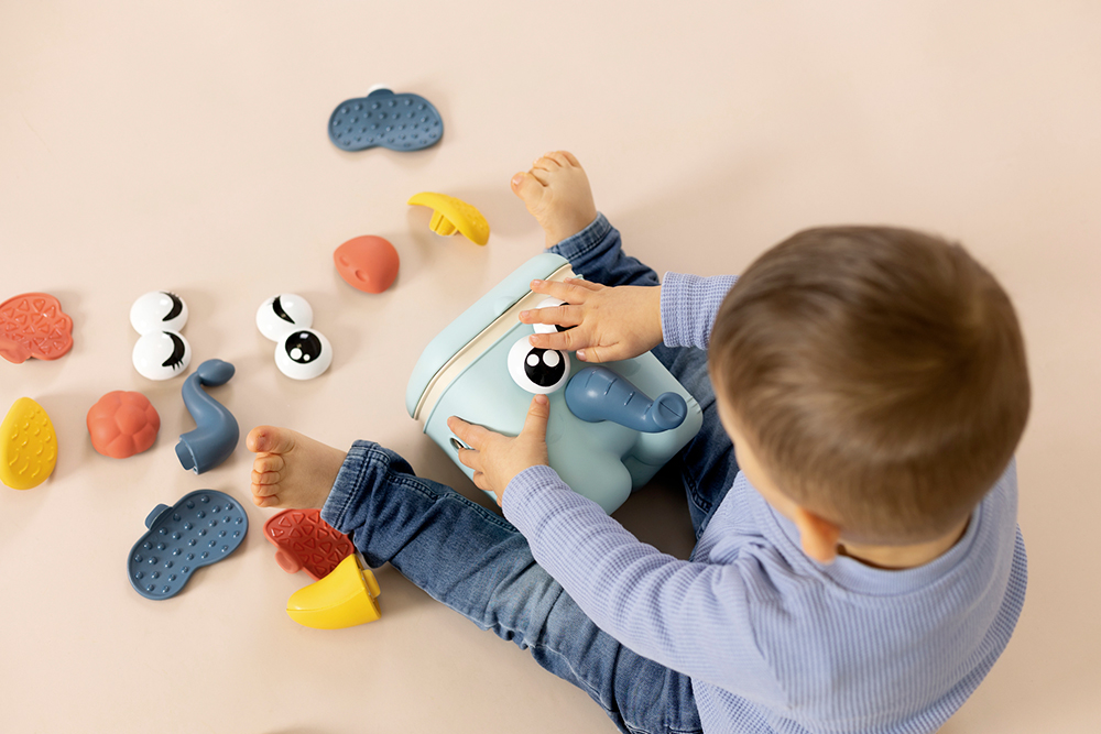 Ce jouet favorise la motricité fine, la coordination et la découverte des différentes parties du visage des animaux.