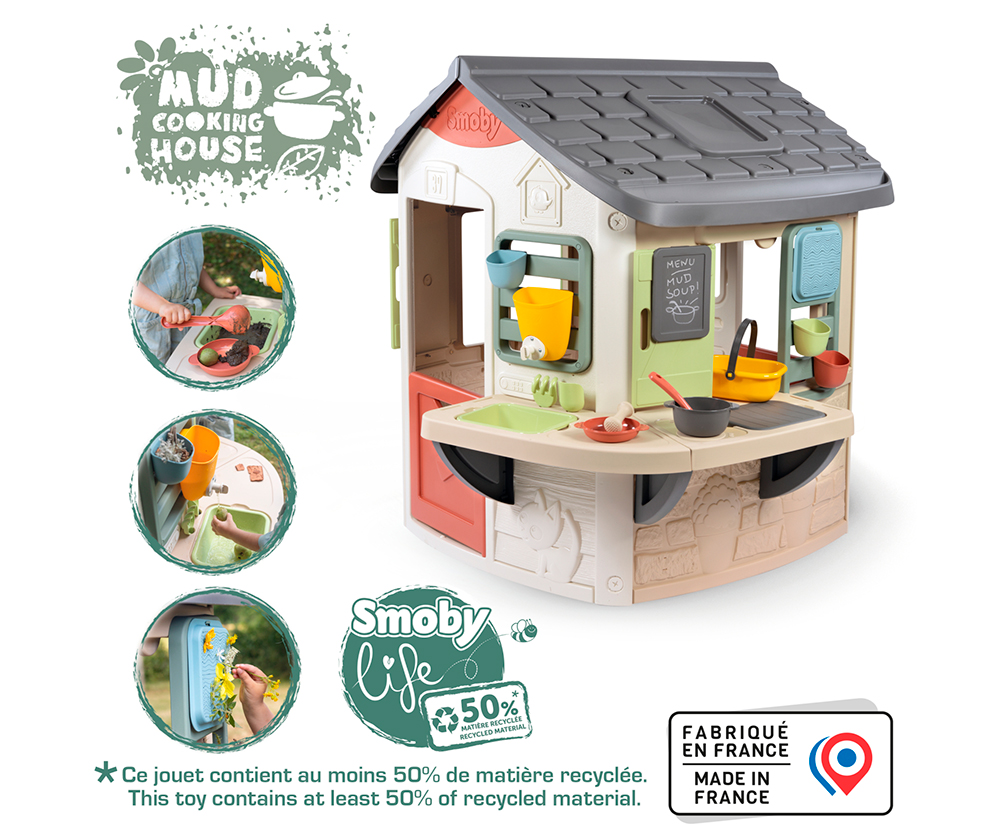 Pratique et résistante, la Mud Cooking House pourra servir des années comme espace de jeu grâce à son traitement anti-UV et ses matériaux robustes. Ses portillons et volets en font une vraie maisonnette, comme les grands!