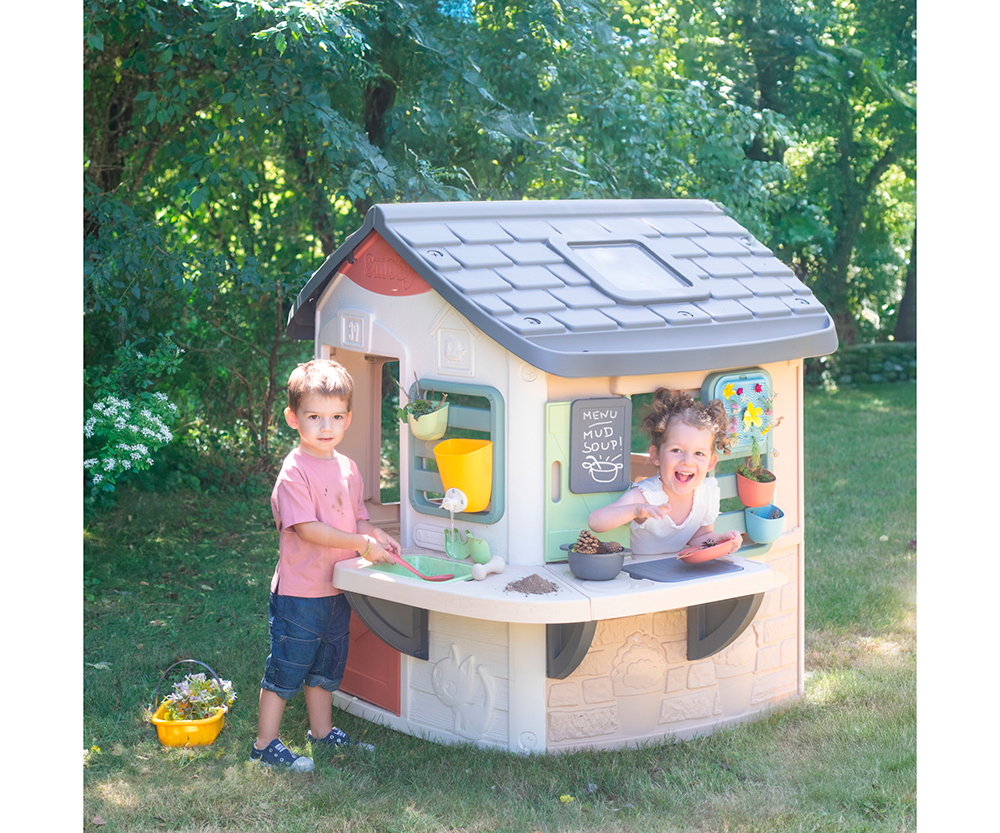 Pratique et résistante, la Mud Cooking House pourra servir des années comme espace de jeu grâce à son traitement anti-UV et ses matériaux robustes. Ses portillons et volets en font une vraie maisonnette, comme les grands!