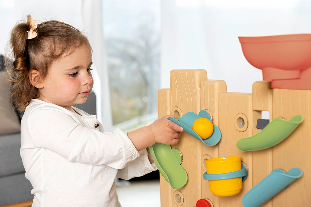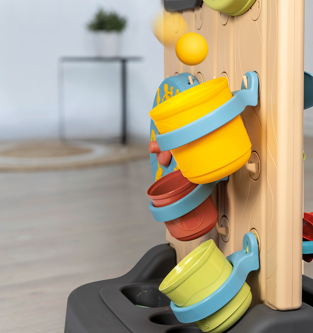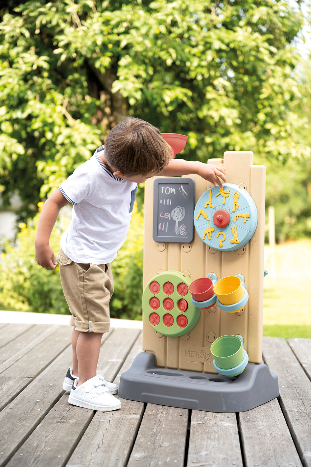 Le jardin est un terrain de jeu idéal pour s’amuser avec de l’eau, lancer des balles ou faire du sport. Le mur d'activités occupera vos enfants pendant de longues heures grâce à ses 6 activités! Sur le 1er côté : place à l’expérimentation. Composez votre propre circuit pour jouer avec de l’eau ou avec les 2 balles incluses. Les enfants pourront moduler le tout comme ils le souhaitent avec des gouttières, un réservoir, une bascule, des gobelets et des roues à aubes. Sur le 2eme côté du mur : un morpion, un jeu de lancer, une ardoise ainsi qu’une roue d’activités sportives. Pour jouer seul ou à plusieurs, ces éléments vont contribuer au développement de la logique, de la dextérité et favoriser la motricité des enfants. Au total, 29 accessoires sont inclus.