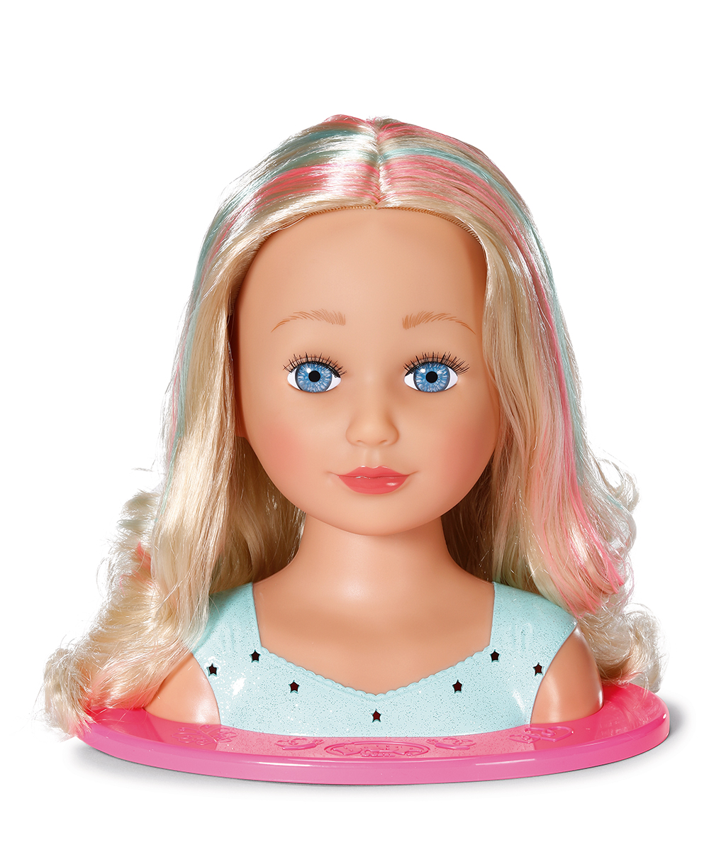 The perfect styling head for budding mini stylists! At 27 cm tall, this styling head is easy to handle and style. It comes with 30 accessories that include hair clips, hair elastics, a tiara, hair clips, blush, eye shadow, hair brush and even stones to decorate her top. With this headpiece, children can let their creativity and imagination run wild while developing their manual skills.