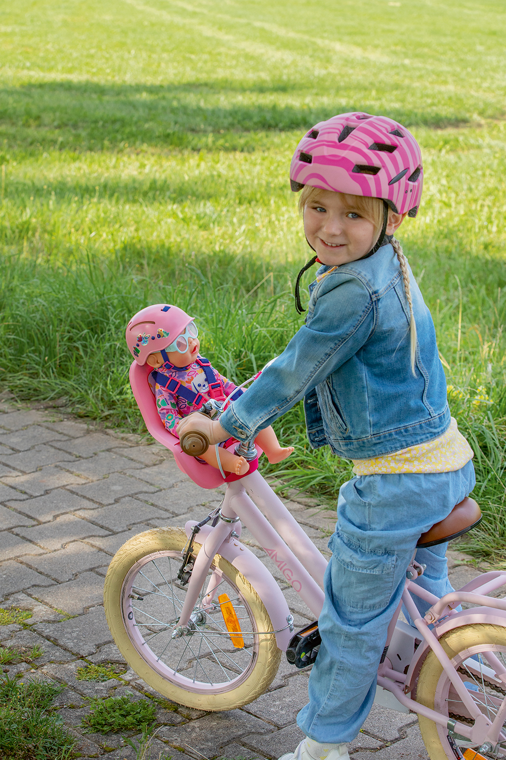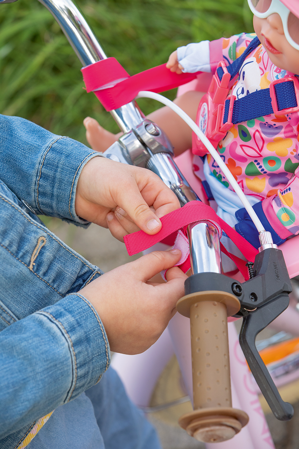 Lightweight and practical bike seat designed to safely take BABY born dolls along for a ride.