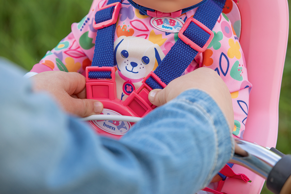 Siège vélo léger et pratique pour emmener la poupée BABY born en promenade en toute sécurité.