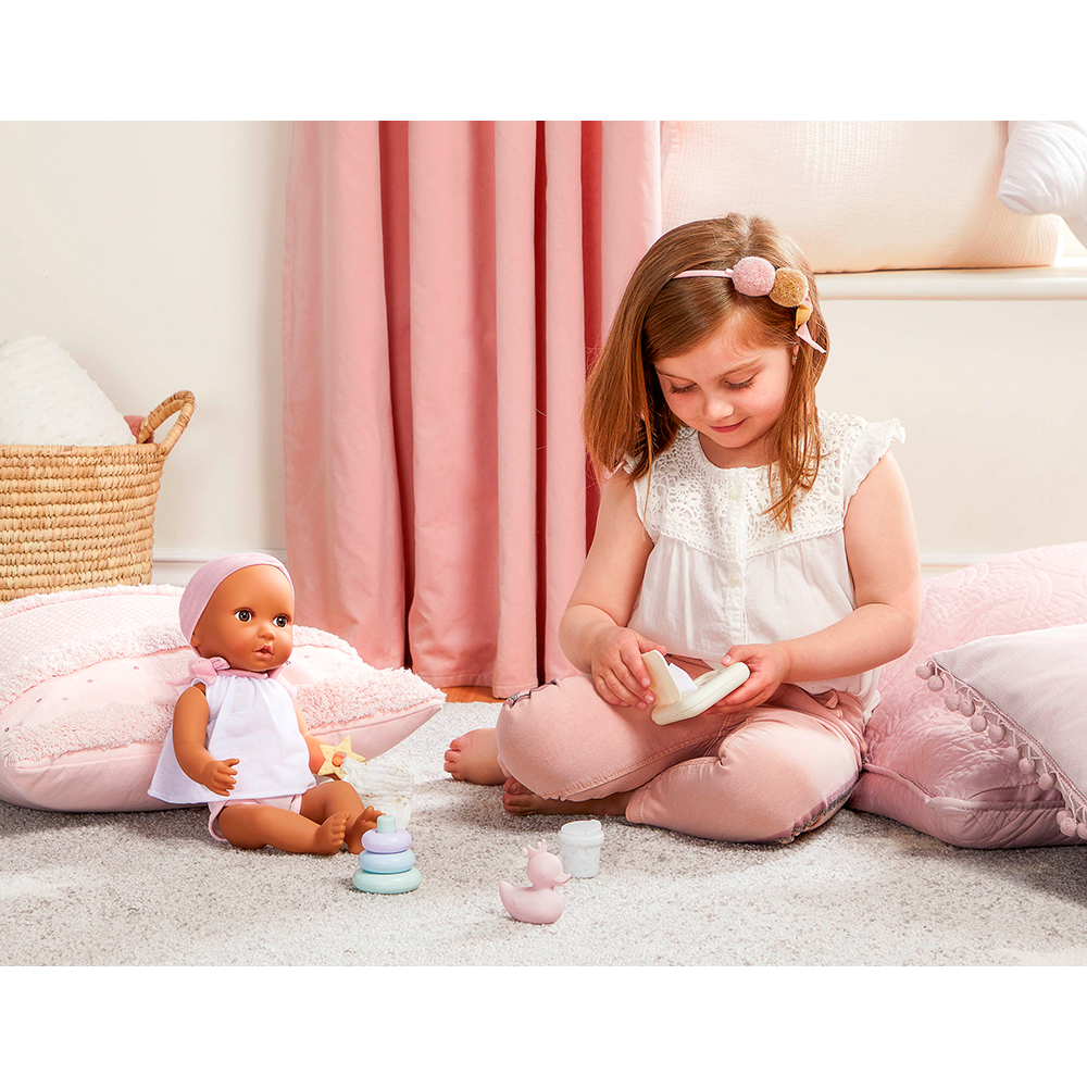 Little ones can get Babi doll ready for nap time with the adorable Lullababy care set,
