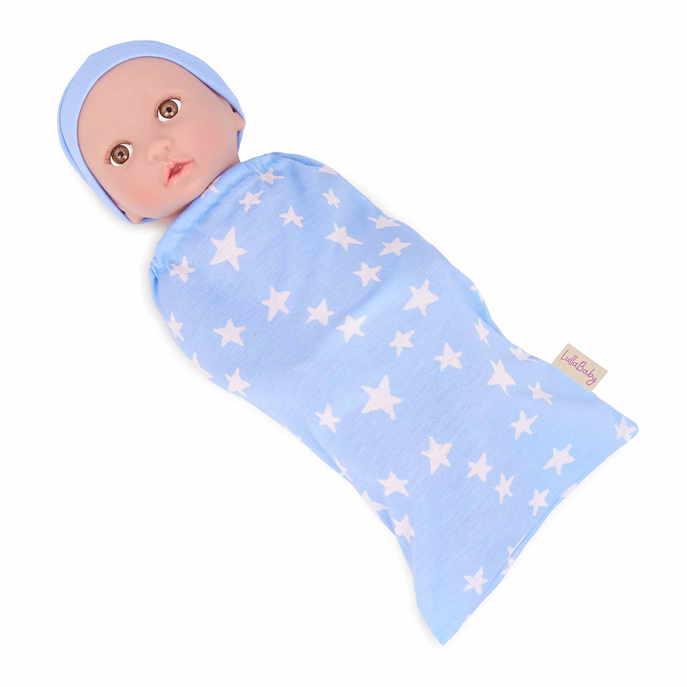 Ces poupées réalistes de 35 cm ont de beaux yeux marron, des cils doux au toucher, des mains et des pieds détaillés, et un corps doux et câlin. Chaque poupée est livrée dans une tenue amovible, comprenant un short confortable et une magnifique gigoteuse pour les aider à s'endormir paisiblement. De taille idéale pour que les jeunes enfants puissent les câliner, les porter et les aimer, les poupées jumelles LullaBaby encouragent les tout-petits à développer empathie, gentillesse et bienveillance au fur et à mesure qu'ils jouent et grandissent avec elles. Ces poupées sans parfum sont recommandées pour les enfants de 2 ans et plus. Testées pour la sécurité, elles répondent à toutes les exigences réglementaires en matière de phtalates et de BPA.