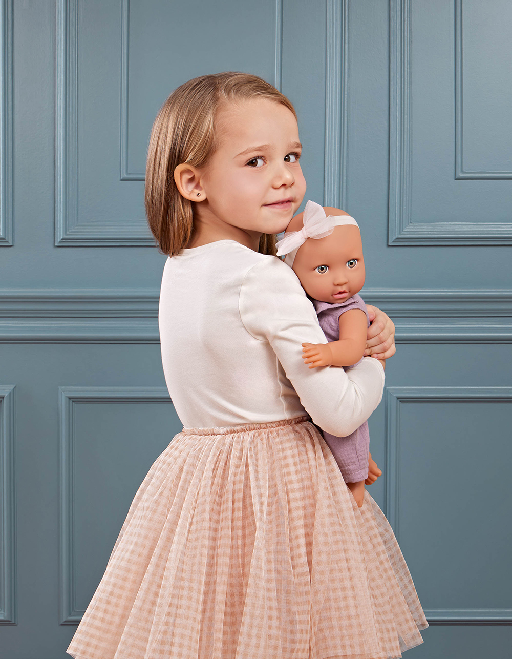 This realistic 14-inch baby doll has bright eyes, soft-to-touch eyelashes, detailed hands and feet, and a huggable soft body to cuddle and cradle. Little hands can easily remove baby doll's outfit and hat when it's changing time. While the removable pacifier accessory lets kids soothe their baby doll during role-play. Whether an early childhood friend, teaching kids how to prep for a sibling on the way, or any joyful moment in between, LullaBaby dolls inspire children to develop empathy, kindness, and caring qualities as they play and grow with their baby doll. LullaBaby dolls and accessories make the perfect gift for toddlers 2 years and older.