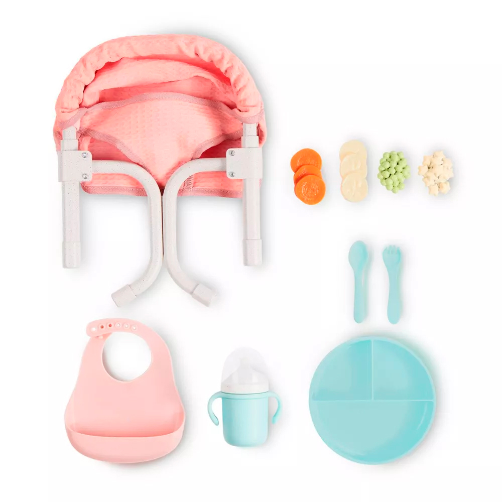 Installez votre poupée préférée tout près de vous avec la chaise à accrocher ''LullaBaby''! Cet ensemble adorable comprend une chaise que l'on peut accrocher à la table pour faire participer la poupée aux repas imaginaires, un bavoir pour la garder propre, ainsi qu'une assiette garnie d'aliments factices, une fourchette, une cuillère et une bouteille à buvette pour faire ''boire'' la poupée. Parfait pour les enfants de 2 ans et plus, ce kit encourage le jeu de rôle et le développement de l'imagination.