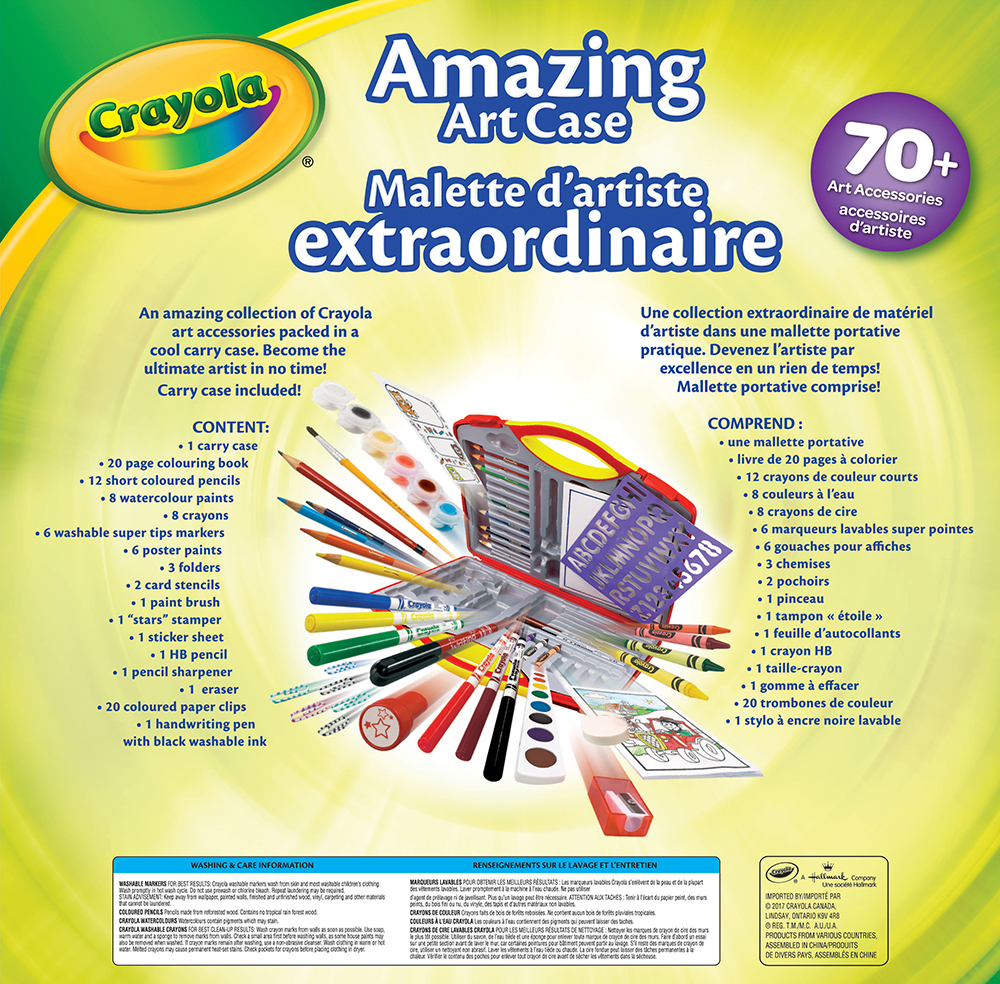 An amazing collection of Crayola art accessories packed in a cool carrying case. Provides children with the tools to become the ultimate artist.