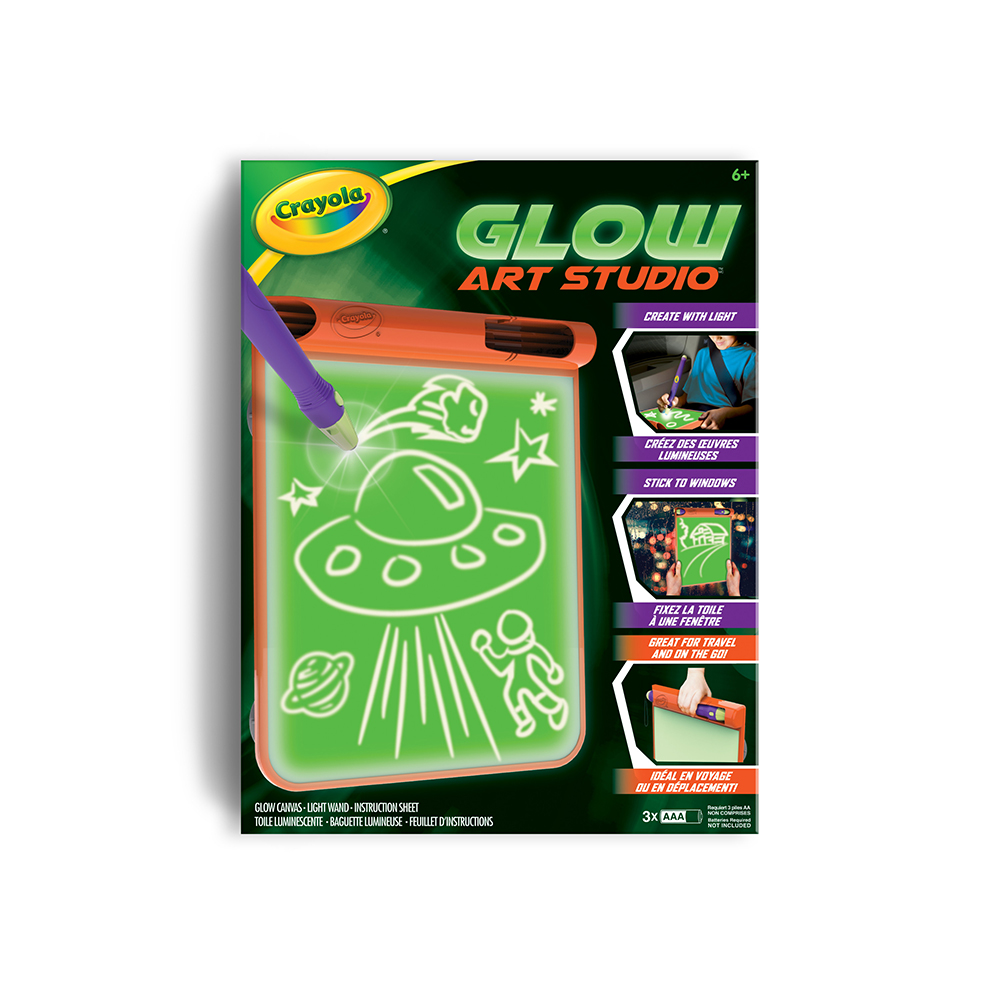 C'est la fête tous les jours avec le Glow Art Studio de Crayola, l'ensemble parfait pour les enfants qui aiment les jouets qui luisent dans le noir! Cet ensemble unique comprend une baguette lumineuse à piles que les enfants peuvent utiliser pour dessiner sur la toile lumineuse incluse, et des ventouses pour fixer la toile à une fenêtre ou à une autre surface pour afficher leurs œuvres. La toile de 21,6 cm x 25,4 cm est idéale pour les voyages de nuit ou les soirées pyjama. Les dessins disparaissent comme par magie lorsque la luminescence s'estompe, pour permettre aux enfants de continuer à créer encore et encore! Lorsqu'il est temps de nettoyer ou de partir en voyage, la baguette lumineuse peut être glissée dans la fente de rangement et la partie supérieure peut servir de poignée pour faciliter le transport! Faites briller les fêtes avec un ensemble cadeau lumineux, ou faites-en une surprise d'anniversaire!