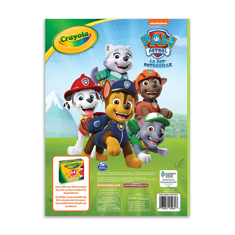 Les enfants peuvent résoudre une foule de mystères amusants grâce au livre à colorier La Pat'Patrouille de Crayola, mettant en vedette leur personnes favoris de La Pat'Patrouille!