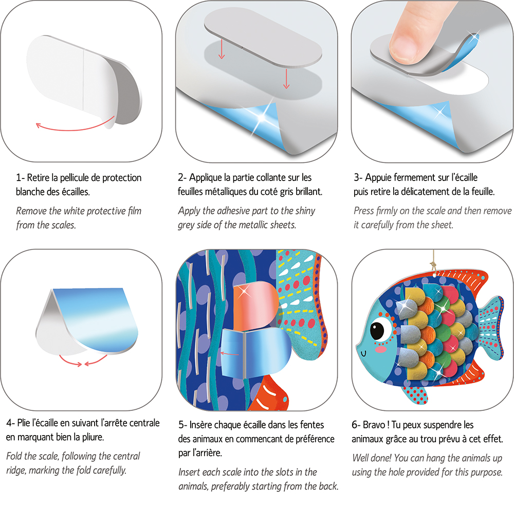 Box sets that will allow children to create beautiful 3D animals that really shine thanks to the metallic scales.