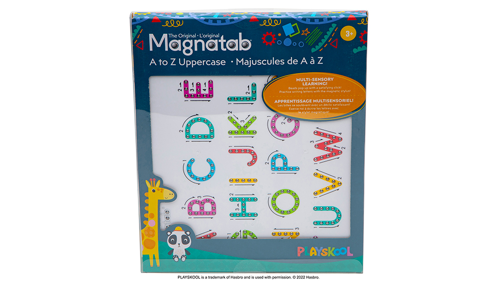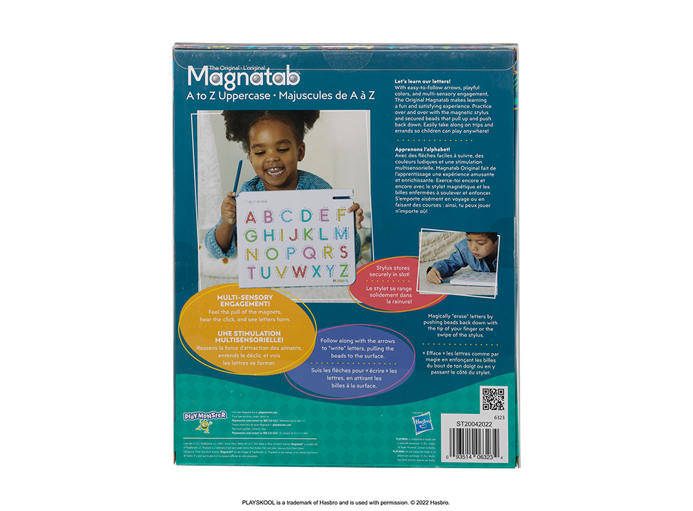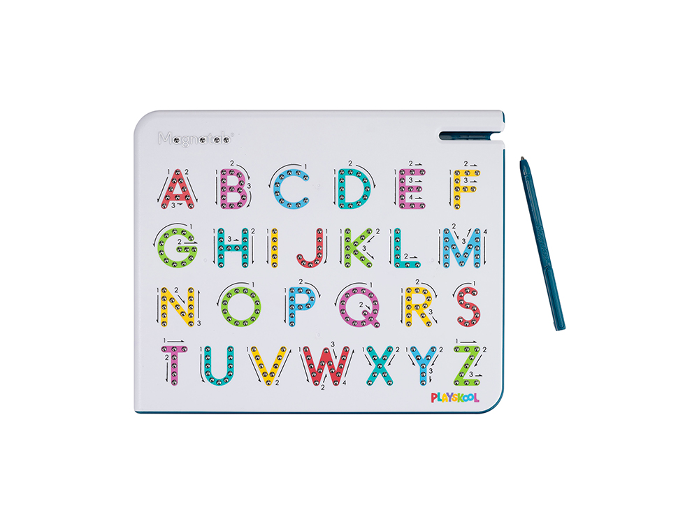With easy-to-follow arrows, playful colors, and multi-sensory engagement including sounds and touch, Magnatab makes learning a fun and satisfying experience. Practice over and over with the magnetic stylus and secured beads that pull up and push back down. Easily take this magnetic letter board along on with you on family vacations or quick grocery trips and errands so children can play (and learn) anywhere! A to Z Magnatab is a magnetic alphabet letters toddler toy that is mess free. This montessori and kindergarten classroom must have is a great alphabet learning toy that your child can use to practice any time. Check out our other preschool learning toys, with magnetic board toys for learning numbers, lower case alphabet letters, and a drawing board! These activities double as travel toys for kids ages 3-5 and preschool learning activities.