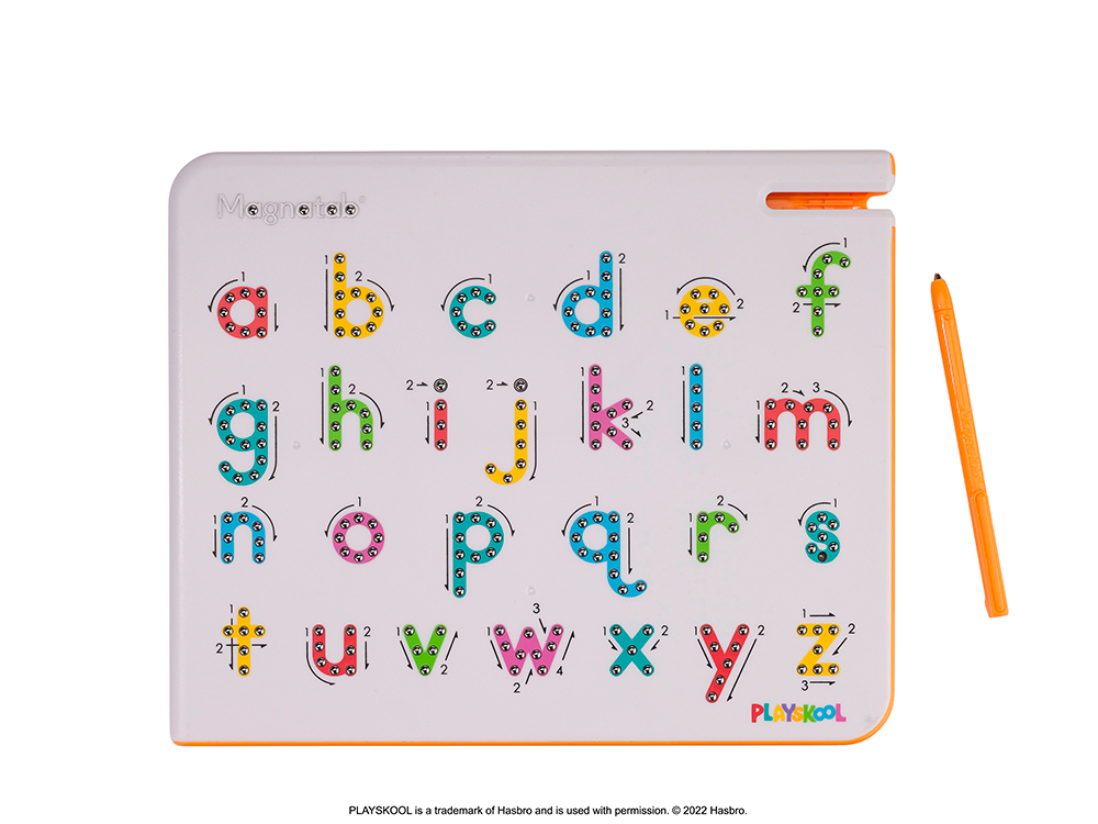 With eay-to-follow arrows, playful colors, and multi-sensory engagement including sounds and touch, Magnatab makes learning a fun and satisfying experience. Practice over and over with the magnetic stylus and secured beads that pull up and push back down. Easily take this magnetic letter board along on with you on family vacations or quick grocery trips and errands so children can play (and learn) anywhere! Lower case a to z Magnatab is a magnetic alphabet letters toddler toy that is mess free. This Montessori and kindergarten classroom must have is a great alphabet learning toy that your child can use to practice any time. Check out our other preschool learning toys, with magnetic board toys for learning numbers, upper case alphabet letters, and a drawing board! These activities double as travel toys for kids ages 3-5 and preschool learning activities.