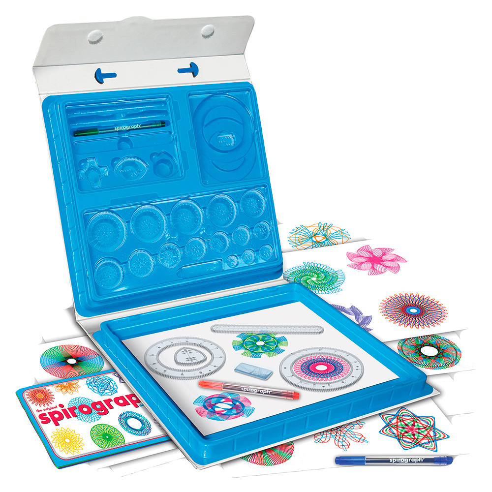 The classic way for aspiring artists to create millions of amazing designs is back and better than ever! The Original Spirograph Deluxe Set features all the iconic wheels and rings of the original, re-engineered and updated for today. The kit features a high quality, durable carrying case with snap-in storage and a built-in drawing surface. The precision engineered Spirograph gears work with the three design pens included in the set as well as with most standard pens, markers and pencils. Spirograph putty holds the Spirograph pieces securely on the paper so that you can create intricately beautiful designs with no holes in the paper! The set also comes with 20 sheets of design paper and a full-color design guide, which explains the fundamentals of drawing with Spirograph, as well as step-by-step instructions for creating your own designs!