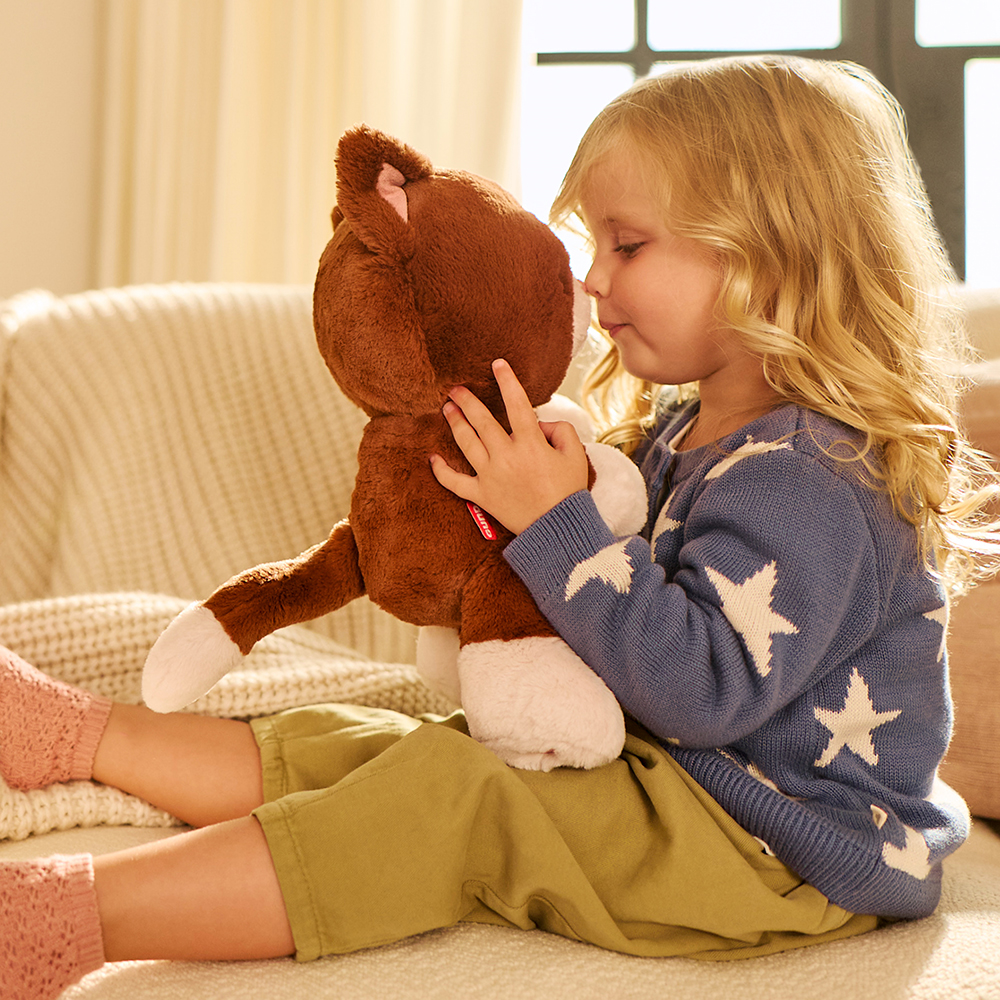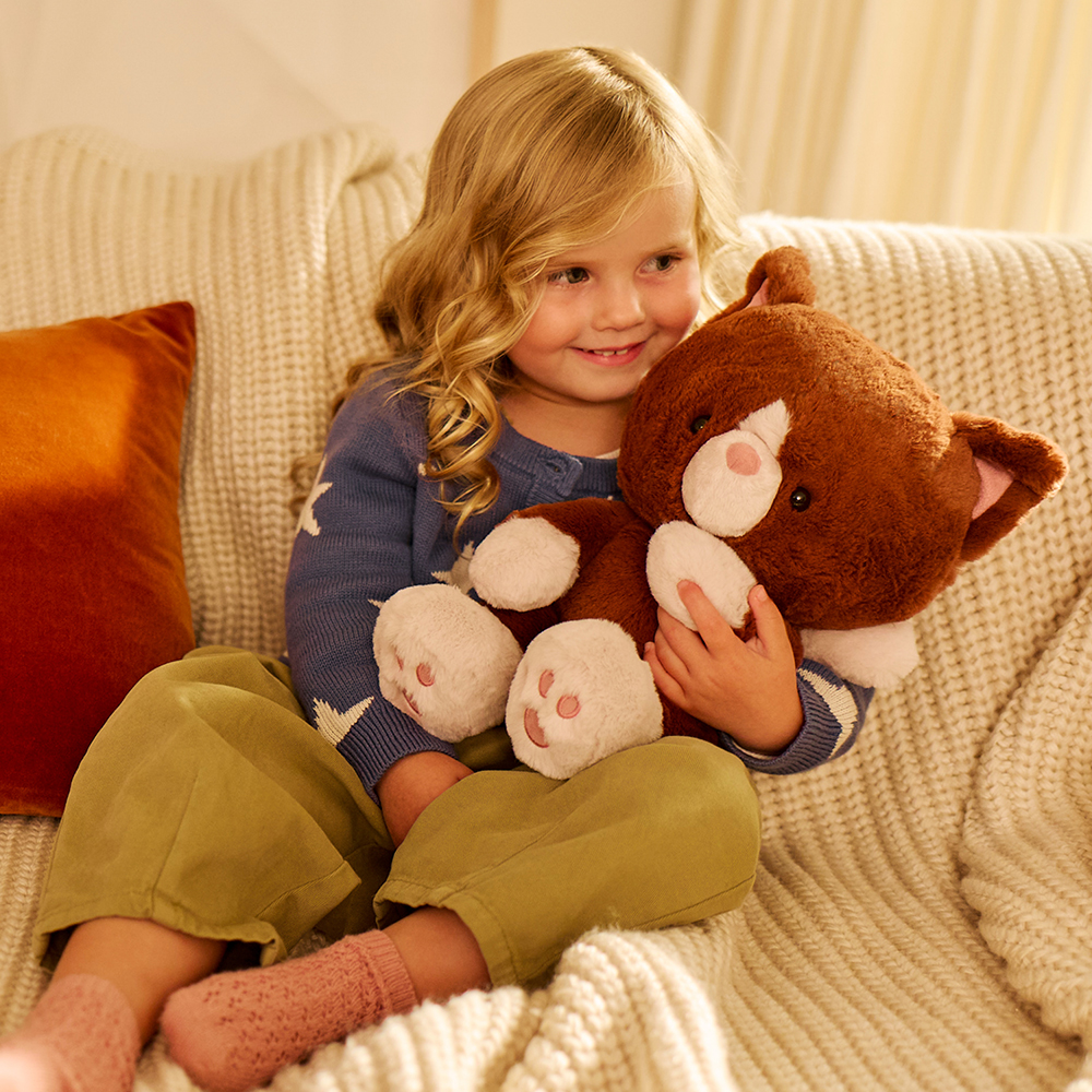 Kai fait fondre le cœur des amoureux des câlins depuis plus de dix ans et est surtout connu pour son design moderne et fantaisiste : une grosse tête toute moelleuse, un petit corps et des pattes extra-larges remplies de billes. Hazel reprend ces mêmes traits charmants et y ajoute de nouveaux détails pensés pour les amoureux des chats, comme des coussinets brodés en imitation daim rose poudré, un nez et des oreilles assortis. Hazel possède également une peluche épaisse et incroyablement douce, couleur châtaigne, avec des touches de rose poudré sur les pattes et une longue queue souple. Découvrez nos ours Kai intemporels dans une variété de couleurs et de tailles, et faites la connaissance de Chip, notre chiot inspiré de Kai! Ces adorables peluches conviennent aux enfants dès la naissance et sont lavables en machine pour un entretien facile et pratique. Chaque peluche est expédiée dans un sachet protecteur en plastique.