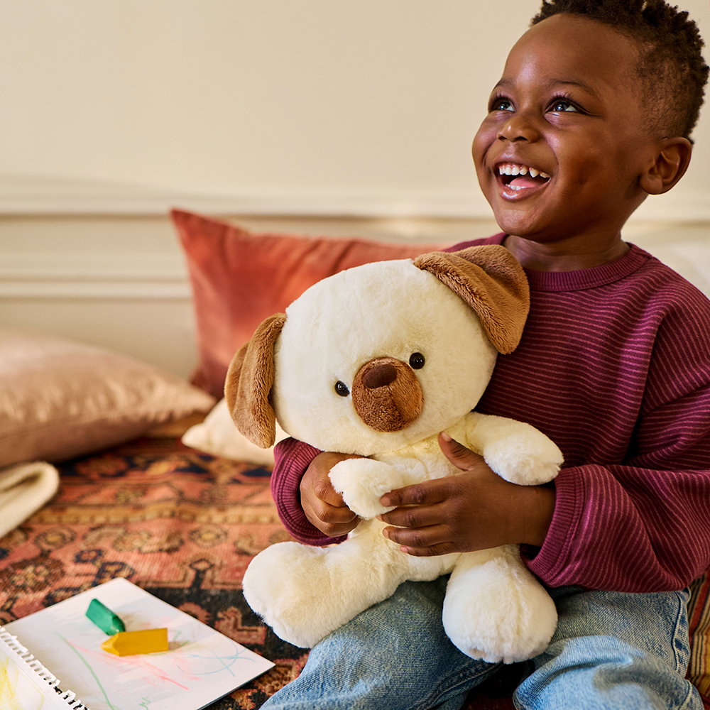 Kai has captured the hearts of cuddlers for over a decade and is best known for its whimsical modern design with a big, squishy head, a small body, and extra-large, bean-filled feet. Chip is here with the same charming features and new details crafted for dog devotees, including deep chocolate-brown plush, faux-suede embroidered paw pads, a matching nose, and ears. Chip also has thick and irresistibly soft, tan plush with chocolate paw pad accents and a short, curly tail. Explore for our timeless Kai bears in multiple colors and sizes, and meet Hazel, our Kai-inspired kitten! These adorable plushies are crafted for ages 0 and up and are machine-washable for easy, convenient cleaning. Each plush ships in a protective poly bag. At the heart of GUND is our collection of stuffed animals, baby toys, and teddy bears, bursting with unique designs and personalities. Each plush friend is made with pride from soft, huggable materials that stay supple through the years. From established classic favorites to brand-new modern pals and squishy toys, there’s a GUND plush for everyone!