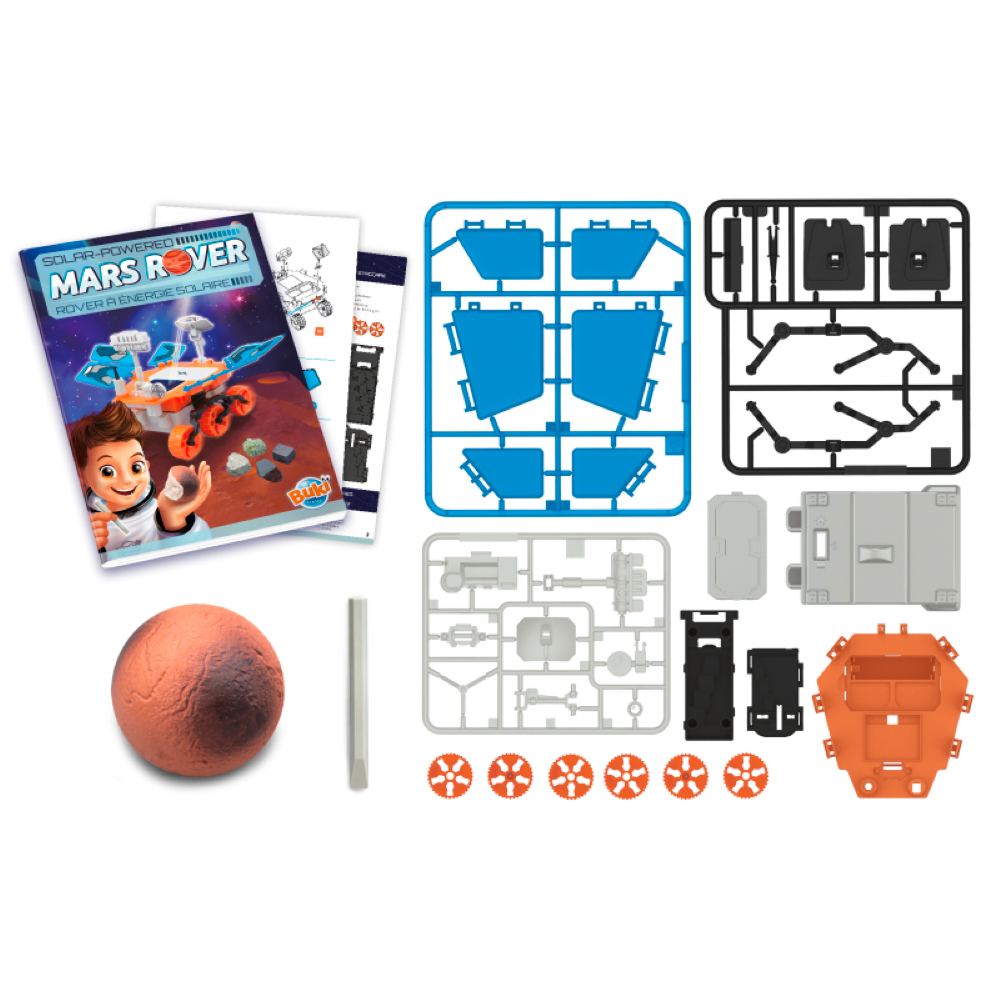 Assemble a Martian Rover. The vehicle is powered by solar energy but can also run on an LR06-AA battery not included, so you can play even without sunlight.