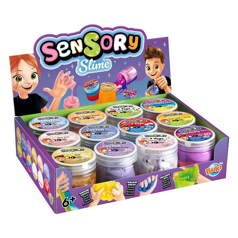 Experience the fluffy feel of Cotton slime. Admire the shiny reflections of Metallic slime. Blend shades with Triple Colour slime. Knead and find hidden toys in Two-Tone slimes.