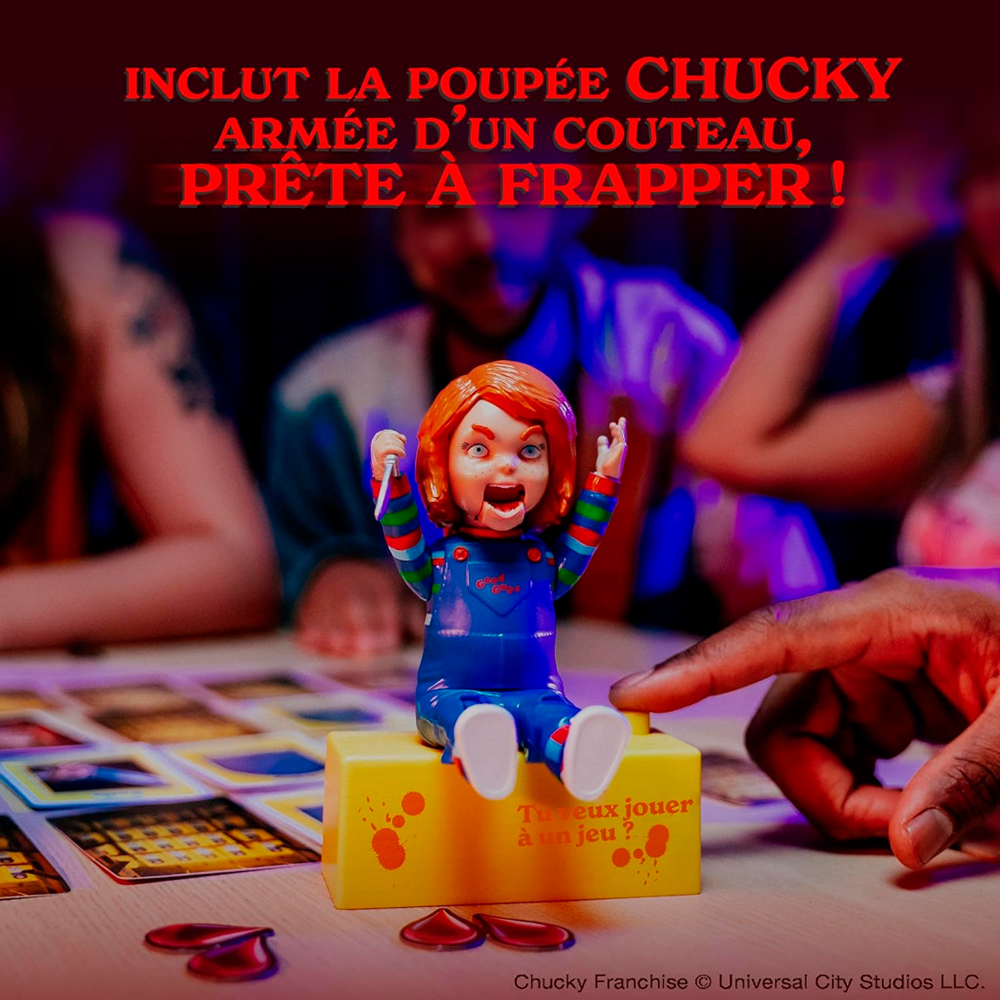 Dans ''Chucky : The game'', les joueurs doivent tenter de tuer la poupée démoniaque et meurtrière non pas une, mais deux fois. Le jeu repose sur un paquet de 21 cartes. À tour de rôle, les joueurs retournent une carte et suivent les instructions. Si un joueur parvient à obtenir l’arme adéquate ainsi qu’une carte Chucky, il peut l’éliminer. Mais si la poupée Chucky tire son couteau, les joueurs perdent la partie.
