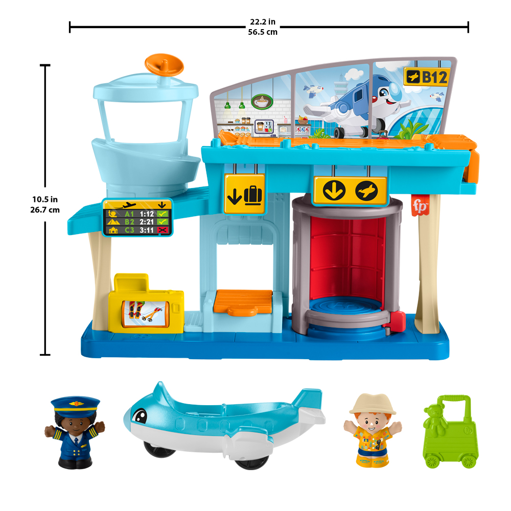 Plongez dans l'univers des voyages avec le coffret de jeu ''L'Aéroport des Aventures Quotidiennes'' de Fisher-Price! Cet aéroport miniature, fidèle à la réalité, est le lieu idéal pour des heures d'aventures imaginatives pour les tout-petits et les enfants d'âge préscolaire. Préparez-vous pour un voyage palpitant en choisissant votre destination, en enregistrant vos bagages et en passant par le contrôle de sécurité. Ensuite, embarquez à bord de l'avion et repliez la passerelle pour le décollage! Ce coffret offre une multitude d'activités réalistes, telles que faire tourner le rouleau des destinations, retourner le tapis roulant des bagages et faire glisser la machine à ''rayons X''. Les tout-petits adoreront embarquer les deux figurines dans l'avion, tandis que les éléments de jeu sont parfaitement adaptés à leurs petites mains pour faciliter la manipulation.