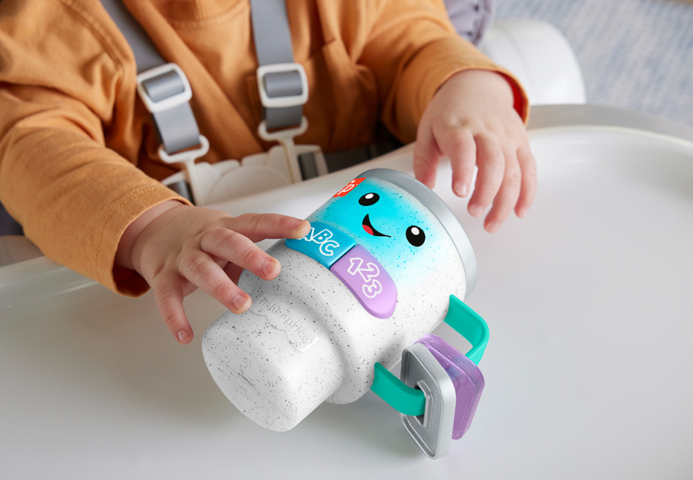 Bébé peut commencer à jouer avec une infusion bien fraîche avec la Tasse à café Réveil et apprentissage Rires et Éveil de Fisher-Price.
