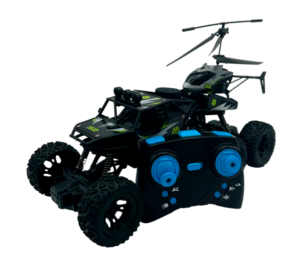 The 2 vehicles are coming togther in a single box and can be both control with the same remote control. You can esily take off and land, control your movements by sliding left and on the right. Strong crawler with trailer that ressemble a very modern off-road vehicle. Universal Remote Control. The KOO remote control is universal and allow you to pilot both KOO vehicles.