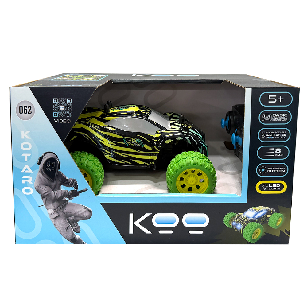 This car is equipped with LED lights that give it a stunning look and enable it to drive even in the darkest of places. This car is very easy to drive. The balance between speed, weight and performance makes this car an ideal entry-level model for RC enthusiasts. The KOO stick controller is universal and allow you to drive any KOO cars. You can record sequences of the car and replay them on command with the simple use of your remote control. All KOO cars are equipped with ''E-KOO FRIENDLY'' rechargeable batteries because it is time to make a change.