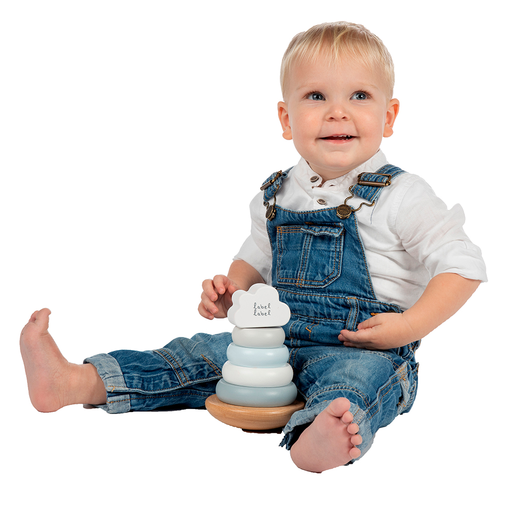 The Label Label balancing pyramid is made of high-quality FSC certified beech wood and was painted in beautiful soft blue, white and grey tones using child-friendly water based paint. The blue stacking rings and top block have a lovely symbol. The wooden rings and top block are easy to grip for the little hands. Stack from large to small or from small to large or sort by color... your child can decide for itself what it likes and in the meantime he/she practices eye-hand coordination and reasoning. Is there no play? Then this pyramid will make every room shine, an extra decorative value for any room.