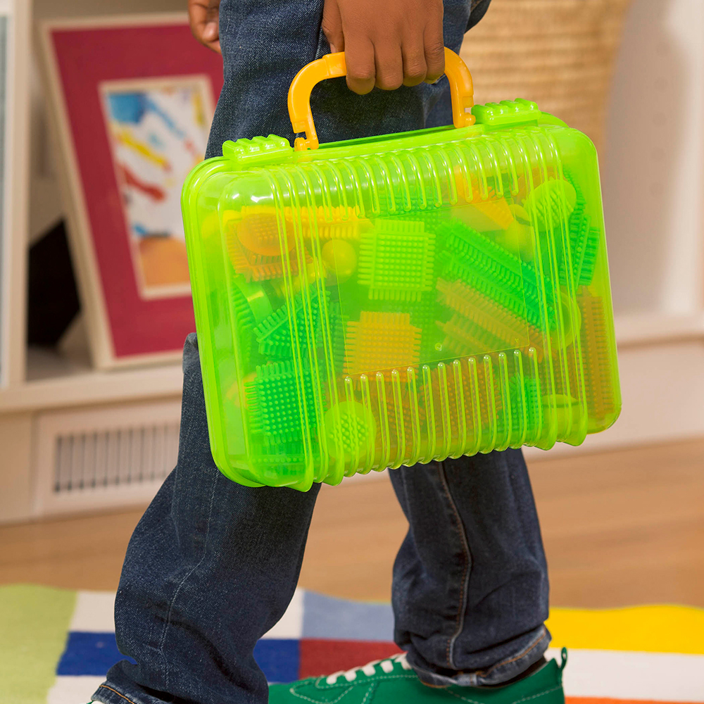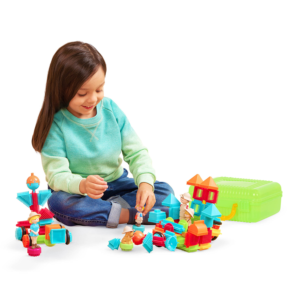 The colourful Bristle Blocks® are easy to assemble and allow you to create unique constructions. Build a robot, a rocket ship, a car, or a city! Simply press the blocks together to connect them and detach them to start again. This set comes in an easy-to-carry storage case.